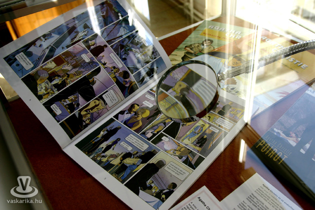 Sopár-Dancsecs Katalin, a kiállítás rendezője ügyelt arra is, hogy ne csak a krimik, hanem azok íróinak élete is elénk táruljon, így rövid életrajzok is olvashatóak a könyvek mellett.