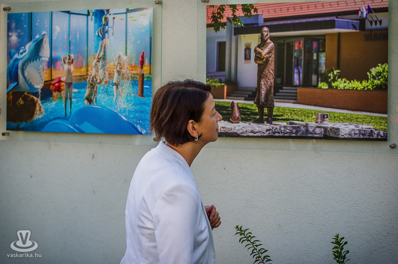 A művészet nagy érdeme az, ahogyan minden apró villanással gyönyörködtet. Ez az érzés könnyen elkap minket a kiállított fotókon is, ahogyan látjuk a Kristálytorony „kalandorait" a naplementében függeni a drótkötélen, ahogyan a Napsugár Játszópark mesterséges tavánál a dramatikus égbolt alatt egyszer csak megjelenik két kerékpáros a semmiből, teljesen más kontextusba helyezve ezáltal a fotót, vagy ahogy Wilhelm István golfoktató a naplemente lágy fényei mellett üti meg a golflabdát egy homokos terepen, aminek hatására szemünket a felkavart homok és a szálló labda dinamizmusa vezeti. Már-már dokumentarista jellegű az a Wellhello fotó, amikor a popduó először járt Bükön, és Fluor Tomi lábán rögzítőkötés volt. Szinte kuriózum ilyen lábbal látni egy mai értelemben vett tiniidolt, hiszen akkor még kevésbé befutott zenekarként ez belefért. De ugyanilyen hatásos fotó a korok közti átjárhatóságot, a modern és a tradicionális összeérését, találkozását ábrázoló kép, ahol a népviseletbe öltözött Háncs Néptánccsoport táncosainak hagyományt felelevenítő színes viselete és dinamikus tánca egyfajta kontrasztot is képez a modern, egyszínű, statikus szoborcsoporttal, ám a két korszak mégis nagyszerűen megfér egymás mellett.