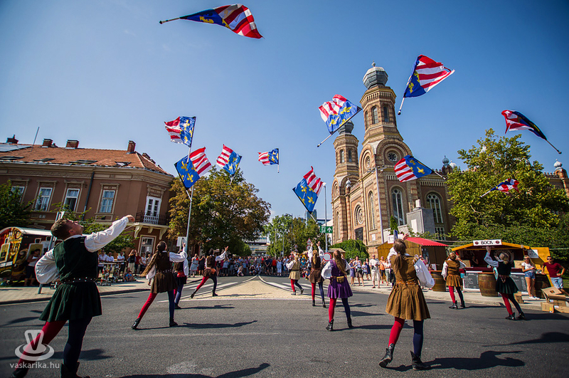 Pavane zászlóforgatók a főtéren és a Borok Utcájában
