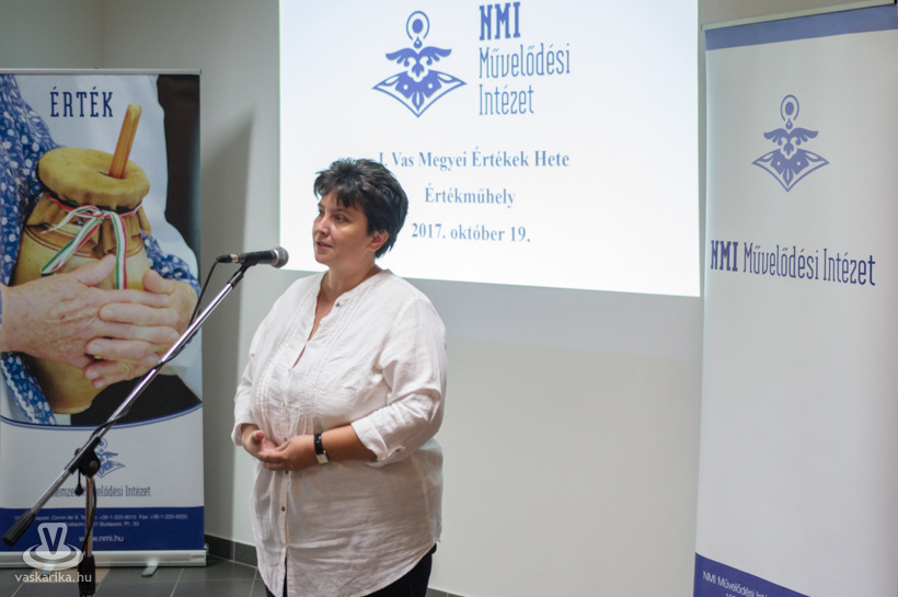 Éles Krisztina központvezető elmondta: a Értékek Hete kezdeményezést az NMI Nyugat-Magyarországi Központja indította el. Ezen a héten minden kulturális közfoglalkoztatott szervez értéktárral, értékkutatással, értékekkel foglalkozó közösségek működését segítő programokat. Szombathelyen a közfoglalkoztatás terén sok civil szervezet partnere a művelődési intézetnek, akik a partnerség jegyében közművelődéssel kapcsolatos programok szervezését vállalták. Olyan programokét, amik a településre, a tájegységre jellemző értékeket, szokásokat gyűjtik, ápolják és elevenítik fel. Ezekkel a programokkal ismerkedhetnek meg október 22-ig a szakma képviselői, valamint az adott települések, térségek közössége. Ahogy kiemelte: az NMI feladata az, hogy a legkisebb településekre is eljusson és azt támogassa, hogy ott összejöjjenek és közösen alkossanak, gondolkodjanak az ott élők.