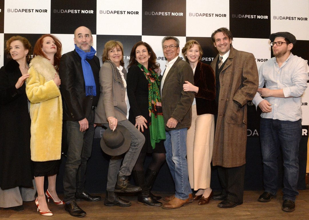 Gárdos Éva rendező (b4), Kemény Ildikó producer (k), Ragályi Elemér operatőr (j4), Kováts Adél (b), Dobó Kata (b2), Kulka János (b3), Tenki Réka (j3), Kolovratnik Krisztián (j2) színészek és Pater Sparrow (Verebes Zoltán) látványtervező a Budapest Noir című film sajtótájékoztatóján a Centrál Kávéházban (Fotó: MTI/Kovács Tamás)