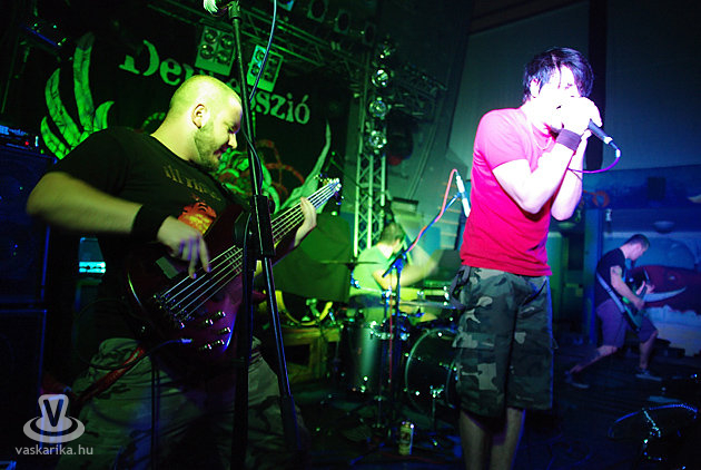 Mindezek persze már előrevetítették azt az örömteli tényt, miszerint újfent heringpartit hozott a Depresszió szombathelyi vendégszereplése. Hellyel-közzel még a falak is izzadtak a teremben, nyúlfarknyi szabad területet sem hagyva a lázadó sörénypörgetőknek. Halász Feri(ének/gitár) ugyan horgászbotot nem hozott magával, remek hangulatot, hatalmas zúzdákat, pörgő melódiákat viszont igen. A múltidézés jegyében kézhez kaptuk az olyan ős-Depi alapvetéseket, mint a „Az ébredés útján", a „Sokkold a rendszert",a „Adj Még" vagy éppenséggel az „Itt Benn", de a kereskedelmileg sikeres Egyensúly lemez is szép számmal képviseltette magát. Dőreség lett volna persze kihagyni mondjuk a klippes „Kezdjük el!"-t, és valóban, a jelenlevők többsége majd kiugrott az előbőréből, mikor az inkriminált nóta kezdő taktusai felhangzottak. Irgalmatlan vehemenciával keringtek főhőseink a színpadon, és ez a fajta életerős mozgás karonfogva az ütős tempóval beindította a csépelést.