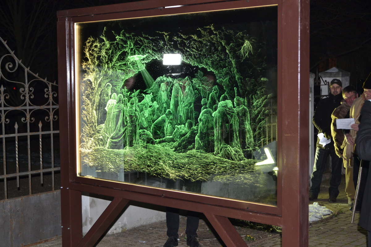 December másodikán egy adventi koncert után avatták fel Perenye új betlehemét, ami egy üveglap, pontosabban egy gravírozott alkotás, Biczó Barnabás munkája. A 160x80 centiméteres, megvilágított mű mindenképpen rendkívüli látvány, amire büszkék lehetnek a helyiek.