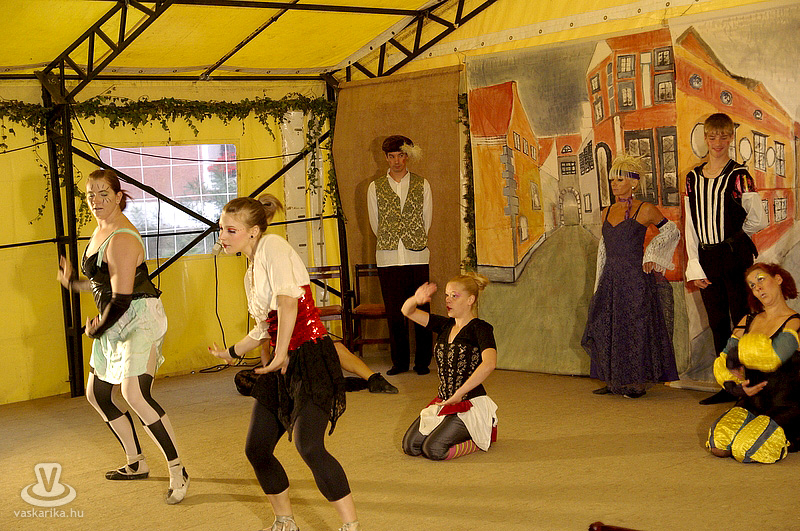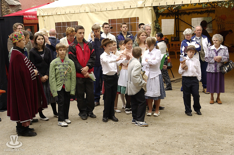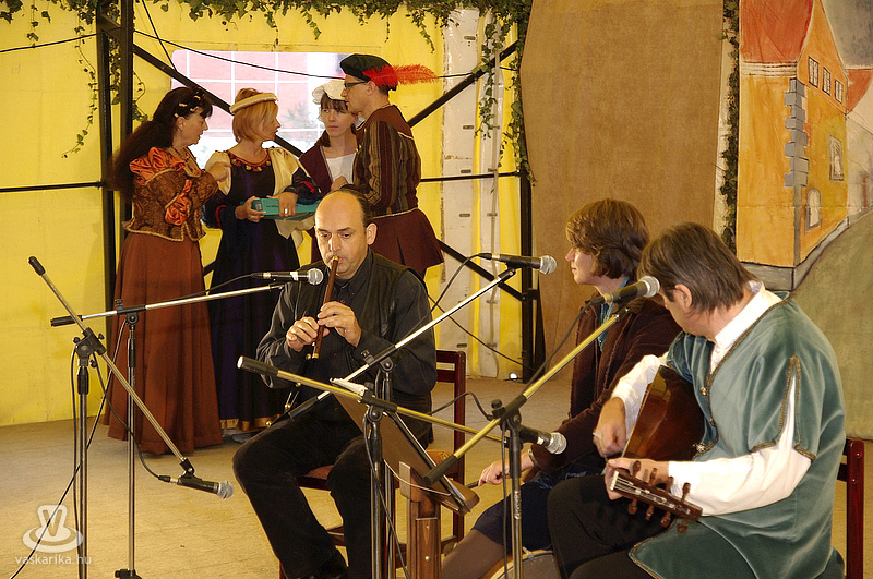 A feltörő gyomornedv csillapítására töpörtyűs és tejfölös langalló készült mobil búboskemencében (gázos volt, de csak tüzelés szempontjából), a tetejére helyezett időzített csörgőóra pedig az odakozmálás elleni védelem "bástyájaként" funkcionált. A látványnak sem utolsó szerkezetben mindenesetre mennyei falatok "sütődtek ki", és pénztárcakímélő üzemmódban - a terjengő langalló-illat miatt - is érdemes volt tenni egy kört a környékén. Délután három órától a Bozsoki Csúzli Színjátszó Kör ifjú növendékei adtak elő Mátyás meséket, két mese közt pedig a legifjabbak kardozhattak a rájuk mosolygó lufikkal. Egyoldalú küzdelem volt, amely első pukkanásig tartott. A mese - pukkantás "sormintát" a Soltis Lajos Színház előadása váltotta fel, amelyre a sátorbeli ülőhelyek szinte teljesen megteltek. Machiavelli reneszánsz komédiája, A fráter került bemutatásra. A darabban minden adott volt a szórakoztatásra: idős férj a fiatal feleségével, szép szomszédasszony, akire szemet vet a ház ura és természetesen az elmaradhatatlan szolga, aki mindig és mindenhol összekuszálja a szálakat. Vevő is volt rá a közönség, majd ismét egy lufi-attak jelezte, hogy felkészülhet a Bozsoki Dalárda. A bordalokat éneklő helyi népdalkör (bordalkör?) negyedórán keresztül énekeltette a borospoharát szorongató publikumot. A dalárda daláradatát a Homo Ludens Zenés Színpad váltotta fel, egy kosztümjében reneszánsz kort ídéző, de stílusában inkább modern táncvarázsra invitálva a nézőket. A darab címe is ez volt: Invito (Meghívás).
