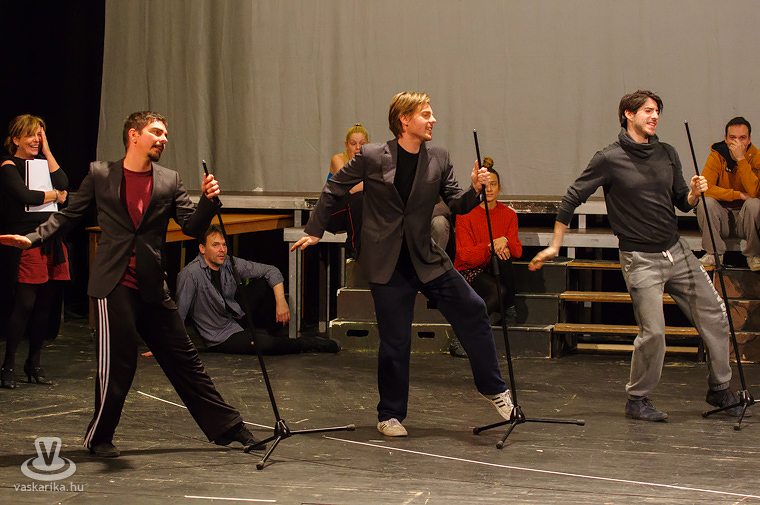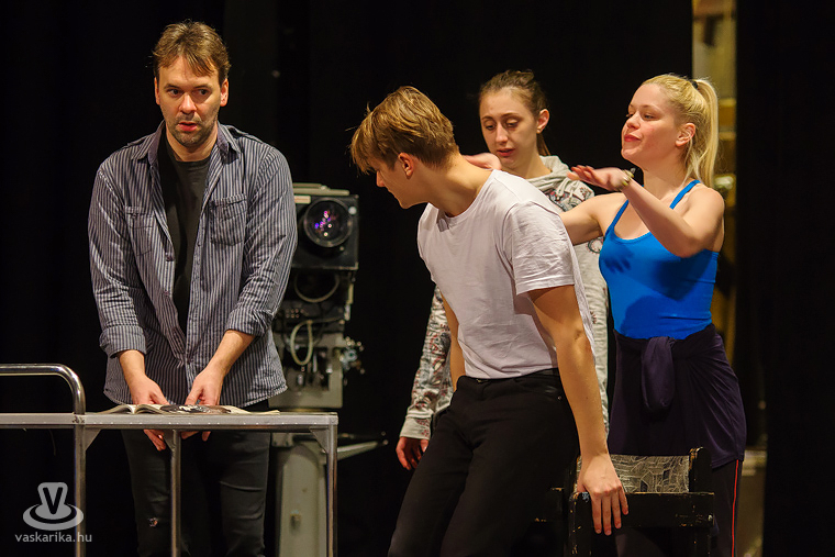 Folynak a Sztárcsinálók című rockopera színpadi próbái a Weöres Sándor Színházban, melyet Nagy Cili rendez, és amit a darab egyik szerzője, Várkonyi Mátyás is megtekintett.