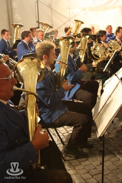 A körmendi fúvósok karnagya, Morvay András kedélyesen elárulta, hogy nem bánja a sátras fellépést, így talán még az akusztikája is jobb a koncertnek, ráadásul kevésbé viszi el a szél a hangot...