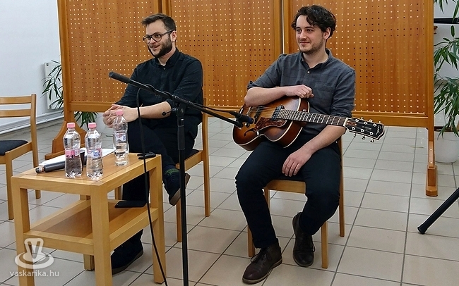 A Szívlapát című antológia után már készül a saját kötet is, amely az elmúlt közel két évtized termésének legjobb verseiből válogat majd, és a tervek szerint még idén ősszel megjelenik. Addig pedig maradnak az Elefánt koncertek, amiből a könyvtárban is kaptunk némi ízelítőt, hiszen a banda másik oszlopos tagja, Tóth András gitáros volt Szendrői Csaba segítségére.