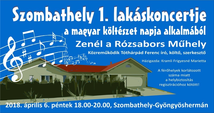 Nagyon menő, kimondottan felkapott formában ad koncertet április 6-án, pénteken a Rózsabors Műhely: egy lakáskoncerten - Kramli Frigyesné Marietta jóvoltából Szombathelyen - adja elő Tóthárpád Ferenc verseit megzenésítve. Az eseményen való részvétel regisztrációhoz kötött.
