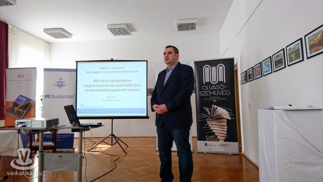 Az első előadó dr. Németh Sándor, Bük város polgármester volt, aki a városban megvalósuló és előkészítésre kerülő fejlesztésekről beszélt, így a fürdőváros új főteréről. A terveket látva, a kialakításra kerülő városközpont egy rendkívül igényes és ízléses része lesz Büknek, ami sok mindent megváltoztat, például a fürdő egyik bejáratának a helyét. Viszont a tér maga egy jól használható közösségi hely lesz, ami számos lehetőséget hordoz magában.