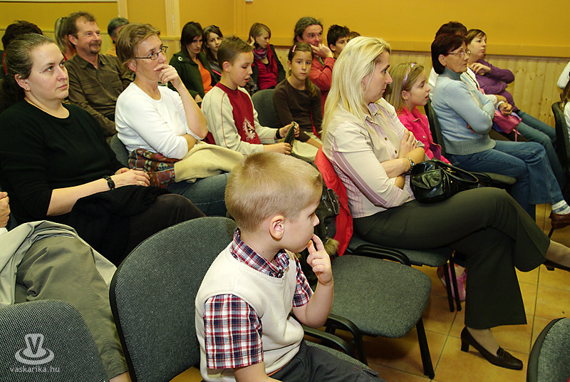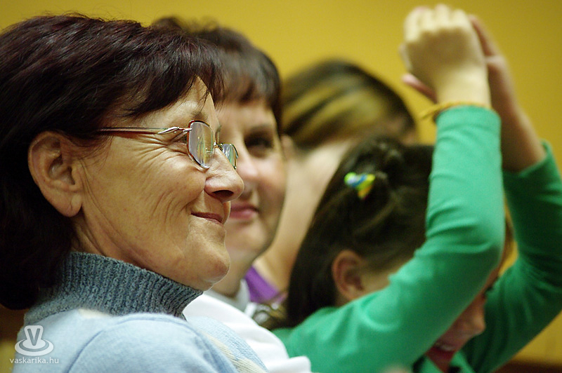 Fel kell állnia, mert háromnegyed óra után már látható, hogy a gyerekeknek nem elég az, ha csak ül: több mozgás kell nekik. Próbál együtt élni a közönséggel, de a gyerekzsivajtól nem „hallják egymás szavát". Mindezzel együtt sikerült neki. Ide hozta az erdélyi fonók hangulatát: szóval, mimikával, dallal sikerült hangulatot teremtenie. Mikor úgy érezte, eljött az ideje: énekelt egyet.