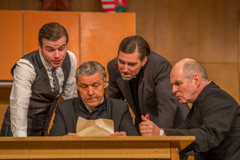 A főbűnös persze ki lenne más, mint Tituba, Parris néger szolgálója (Vlahovics Edit), de a lányok válogatás nélkül megvádolnak mindenkit. Kedves Rebecca Nurse (Kiss Mari) figurája, akinek pontosan helyén van a szíve. És a többiek? A Putnam házaspár (Nagy Cili és Kelemenen Zoltán) készségesen elhisz mindent a boszorkányokról, Thomas Putnam felemelt karokkal várja, hogy a bűbáj áldozatául esett Betty Parist (Gonda Kata) elkapja, ha az netalán elrepülne. Igen, a kis település lakói elhiszik, amit a lelkipásztoruktól hallanak, hisznek a rossz erejében, és elkeseredetten bizonygatják kivégzésre váró hozzátartozóik ártatlanságát. A hatalom képviselői azonban vakok és süketek, Danforth, kormányzóhelyettes, a bíróság elnöke (Szerémi Zoltán), Hawthorne, bíró, a bíróság ügyésze (Kenderes Csaba) a rideg és kegyetlen uralkodó hatalmat testesítik meg, semmi emberi tényezőt, semmilyen enyhítő körülményt nem vesznek figyelembe. Mary Warren, Proctor szolgálója (Hartai Petra) nehéz helyzetbe kerül, döntenie kell, a saját életét védje-e, vagy kitartson-e az igazság mellett? Ezt a döntést nem ússza meg a mindkét lábával a szilárd talajon álló, önmagával vívódó, a megvádoltakat megmenteni akaró gazdája, John Proctor sem.