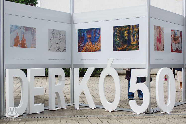 Május 11-én megtelt kisiskolásokkal, szülőkkel és érdeklődőkkel a Derkovits Gyula Általános Iskola előtti tér a jubileumi év záróeseményének alkalmából. Az 50 éves 'Derkóra' rendezvénysorozattal emlékezett az iskola, melynek csúcspontja a névadó festő reprodukcióiból összeállított utcatárlat pénteki megnyitása volt.