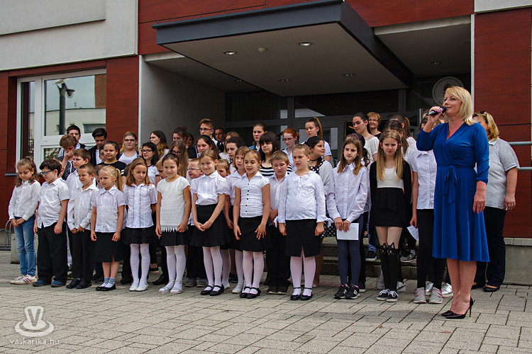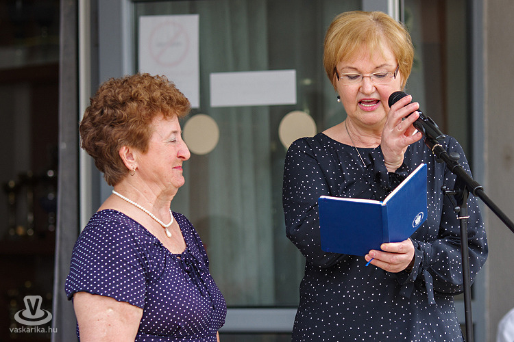 Előtte az iskola énekkara "köszöntötte" az ünnepi alkalom résztvevőit, majd dr. Kovács Péterné igazgató utalt rá beszédében, hogy a mai nappal a végére érnek egy olyan rendezvénysorozatnak, melyet az iskola fennállásának 50. évfordulója kapcsán szerveztek egy tanéven keresztül. Kiemelte: külön öröm volt számára, hogy rengeteg önzetlen segítséget kapott programjaik támogatására az iskola olyan közreműködőktől is, akik eddig nem tartoztak az intézményhez, nem voltak partnerei. Igazgatónő megköszönte a nyugdíjas kollégák programokban való közreműködését, a szervezésben, kiállításrendezésben való aktív szerepvállalást. Ebből az alkalomból vehette át gyémántdiplomáját Ferenczy Rezsőné, aki az iskola második évében már a tantestület tagja volt, és 26 éven keresztül tanítóként és igazgató-helyettesként növelte az intézmény jó hírét.