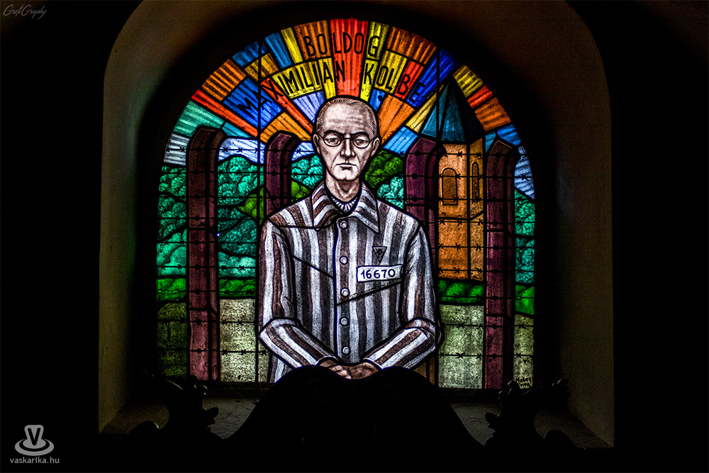 Utunkat folytatva a Ferences Plébániánál álltunk meg előbb, majd a régi városházánál fejeződött be a séta. A templomnál megnéztük a Szent Maximilian Kolbet ábrázoló üvegablakot, és megtudtuk, hogy a minorita szerzetes vértanúhalált halt egy kétgyermekes fogolytársa helyett a II. világháborúban.