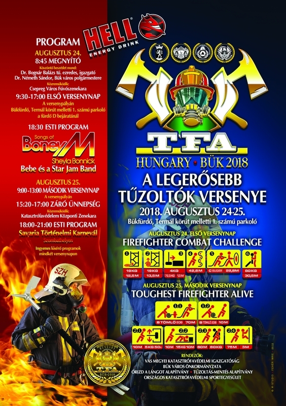 A karneváli hétvégén rendezik Bükfürdőn a Legerősebb tűzoltók nemzetközi versenyét is, ahová közel tíz országból várnak nevezőket a szervezők. Vas Megyei Katasztrófavédelmi Igazgatóság igazgatója kiemelte, hogy közös cél a turisztikai desztináció népszerűsítése, ennek érdekében a két rendezvény nem egymás ellen, hanem egymást segítve népszerűsíti a megyét. A Tűzoltóverseny résztvevői fellépőként, jelmezes felvonulóként és nézőként is ellátogatnak a XIX. Savaria Történelmi Karneválra.