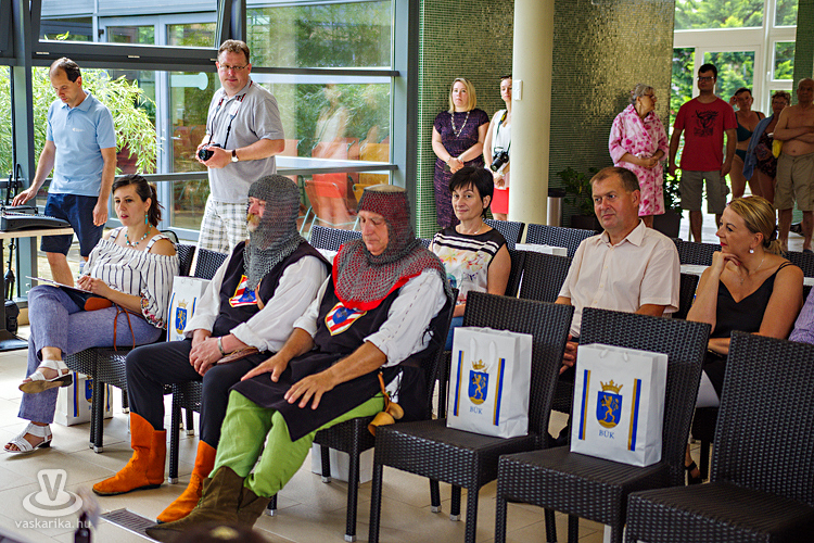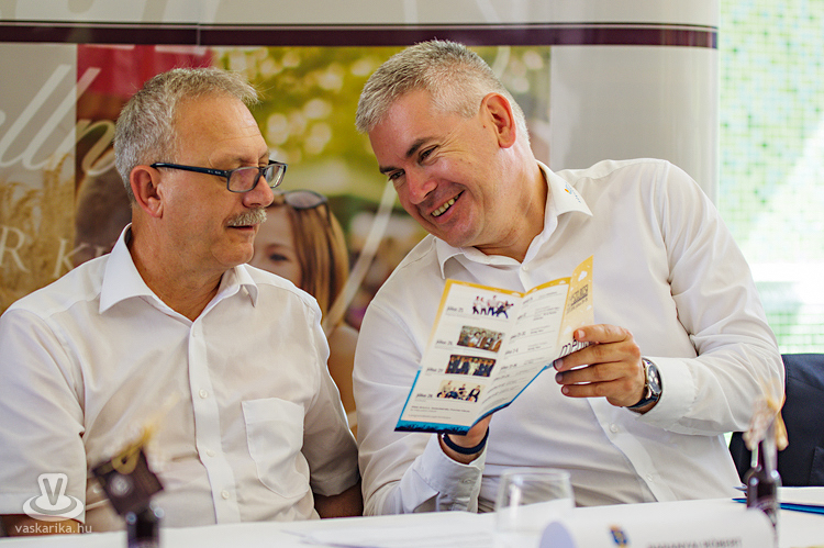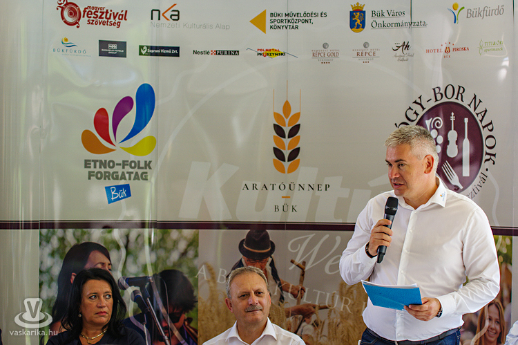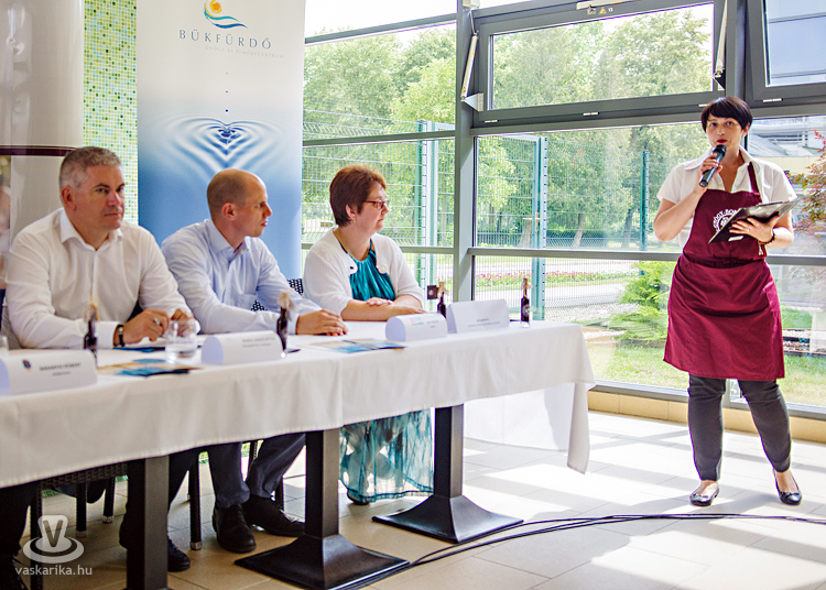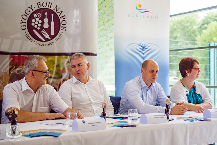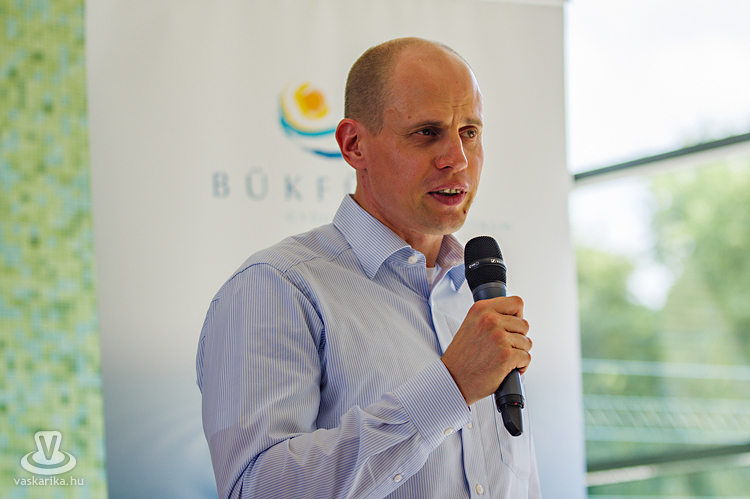 Baranyai Róbert alpolgármester nyitotta a nyári programok ismertetésének sorát. Balról-jobbra: dr. Bognár Balázs, Tóth Tamás fesztiváligazgató, Spilenberg Andrea, a BBKTE elnöke, Baranyai Róbert, Boros László Attila, a Büki Gyógyfürdő Zrt. vezérigazgatója, Kai Herzke, a Nestlé Hungária Kft. igazgatója, Giczi Nikoletta