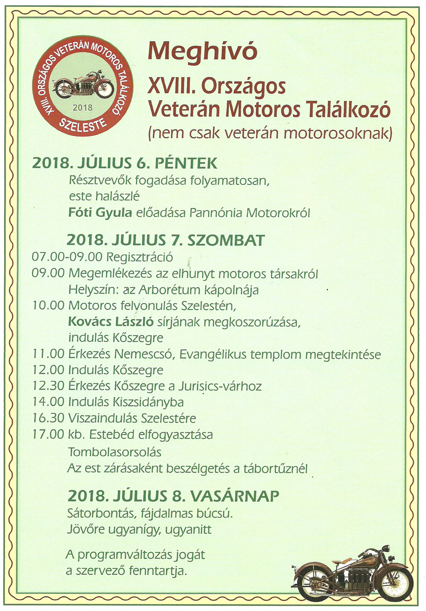 XVIII. Szelestei Országos Veterán Motoros Találkozó, Kovács László Emléktúra (júl. 6-8.)