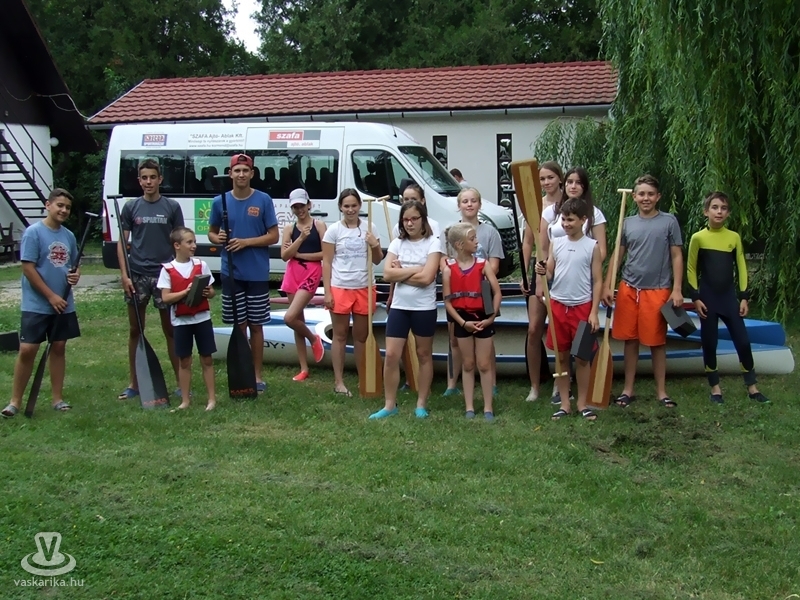 Az élménydús program június 15-én egy hosszú utazással vette kezdetét. Kicsit álmosan indult a csapat Körmendről a Bárkaház elől kisbusszal. Amíg más sportolók visznek pár labdát és bepakolják a mezeket, addig itt egy tréler várta hajókkal megrakodva, hogy induljunk Taksonyba, ahol egy igazi retro kempinben kaptunk szállást. Kísérő szülőként első pillanatban azt gondoltam, hogy majd jönnek a gyerekek, hogy itt-ott fellelhető néhány pók a szobákban, elég rövidek az ágyak, de hát ilyen egy kemping, ahol 30 évvel ezelőtt megállt az idő. Ezzel szemben a sok kütyühöz szokott gyerek kis túlzással ledobta a táskáját a faházakban, és elkezdett focizni a frissen lenyírt fűben, majd lebontotta a hajókat a trélerről, és azonnal ment is edzeni. A szállás végében ott volt a Duna egyik mellékága, ami ehhez kitűnő körülményeket biztosított.