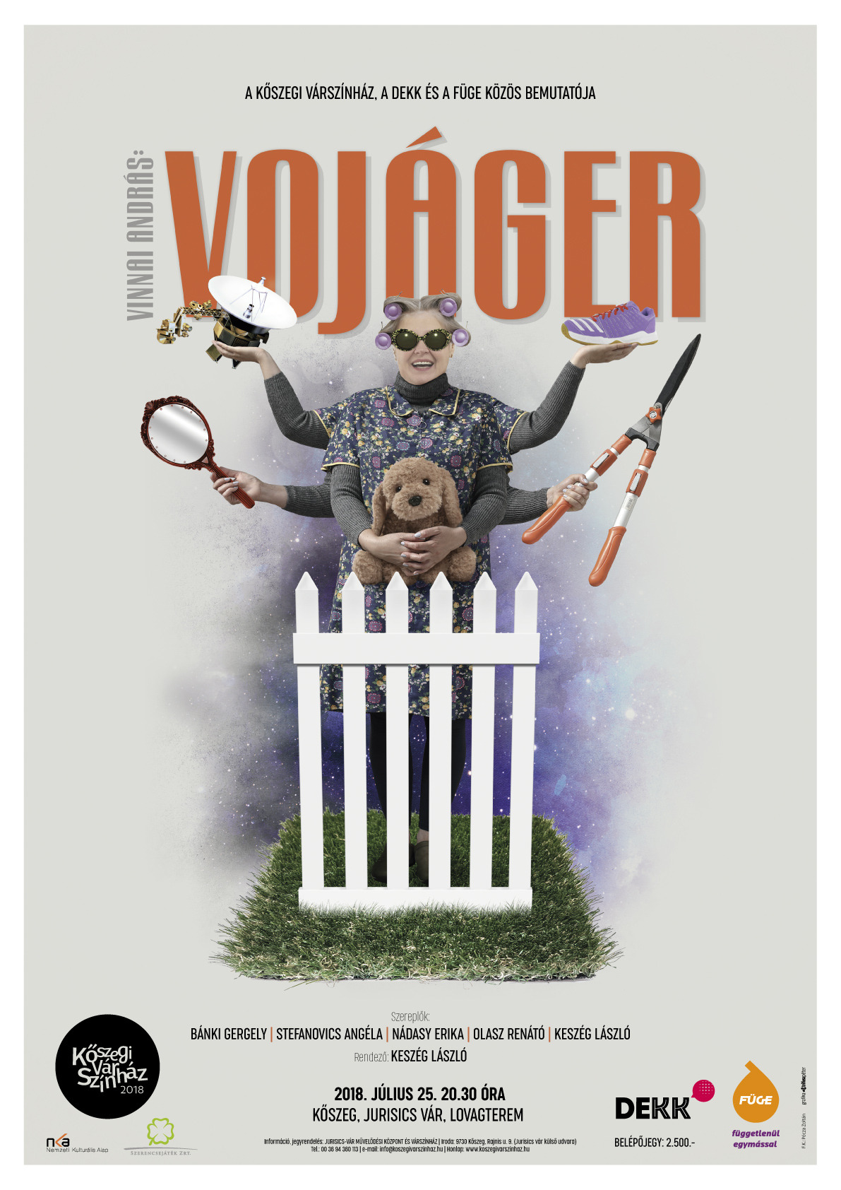 Július 25-én mutatja be a Kőszegi Várszínház a DEKK Színházzal és a Fügével együttműködve Vinnai András: Vojáger című darabját. Az előadást a Jurisics-vár Lovagtermében tekintheti meg a közönség. A groteszk színjáték egy kertvárosi megvilágosodásról szól, ami óriási gatyába brunyálással végződik.