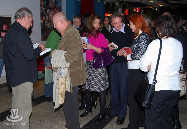 A hideg, nyirkos novemberi idő ellenére vidám, meghitt hangulatban zajlott Vámos Mikós könyvbemutatója. A szerző eljött közénk, leült, és hetven percen át mesélt a tőle megszokott töretlen kedvvel. Az idő szinte száguldott, miközben részesei lehettünk a „vámosi univerzumnak", a szerző derűs öniróniával avatta be a közönséget életének apróbb titkaiba, könyve megszületésének rejtelmeibe. Egy költői kérdéssel indított, vajon miért van az, hogy Magyarországon nem merik kifütyülni a színpadról a nem tetsző produkciókat. A nézők lelkiismeretesen végigböjtölik a csapnivaló előadást, vastapssal jutalmazzák a színészeket, majd utána egy évig szidják, hogy ilyen rossz műsort még sosem láttak. Egyúttal felszólította a közönséget, hogy amennyiben elégedetlenek, nyugodtan álljanak fel, és hagyják el a nézőteret. Természetesen erre nem került sor, mert Vámos kiváló elbeszélő stílusa figyelmünket egy percig sem engedte lankadni.