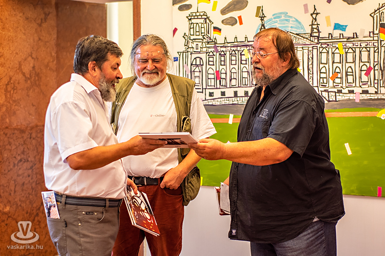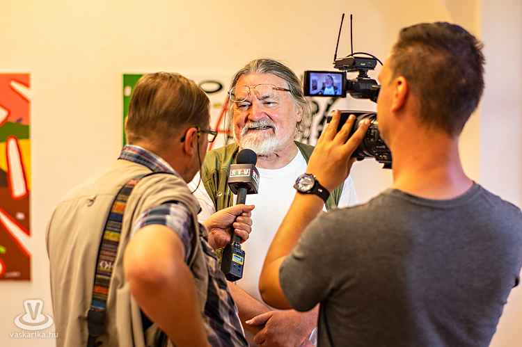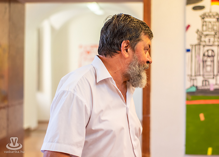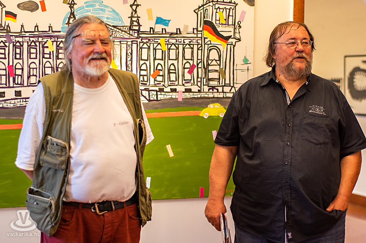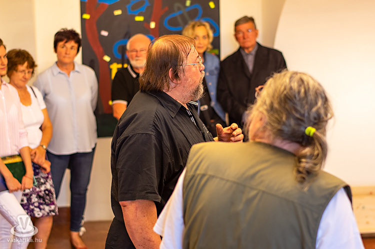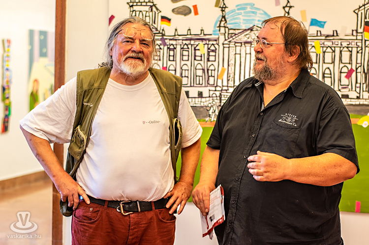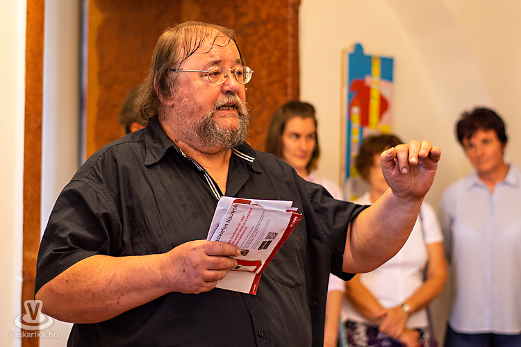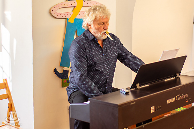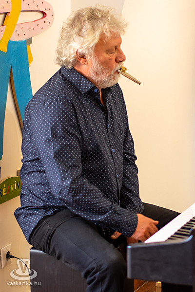 Utóbbiba először a vernisszázst zongorajátékával előmelegítő Gróf István (aki portálunkon is míves nyomot hagy írásaival!!) zökkentett vissza, aki a Beatles örökbecsűjét, a közös ifjúkor emlékét, a Hey Jude-ot gondolta "tárlatfelütő zenének". A végén azt is megtudtuk, hogy István nemcsak nagyszerű zenei szakíró, hanem Sárvár legjobb kazoo-játékosa. Multiinstrumentális zenészkét bevetette még a pofagyalut és a cajont is élményfokozóként, ahogy az egy igazi bluesman-hez illik.