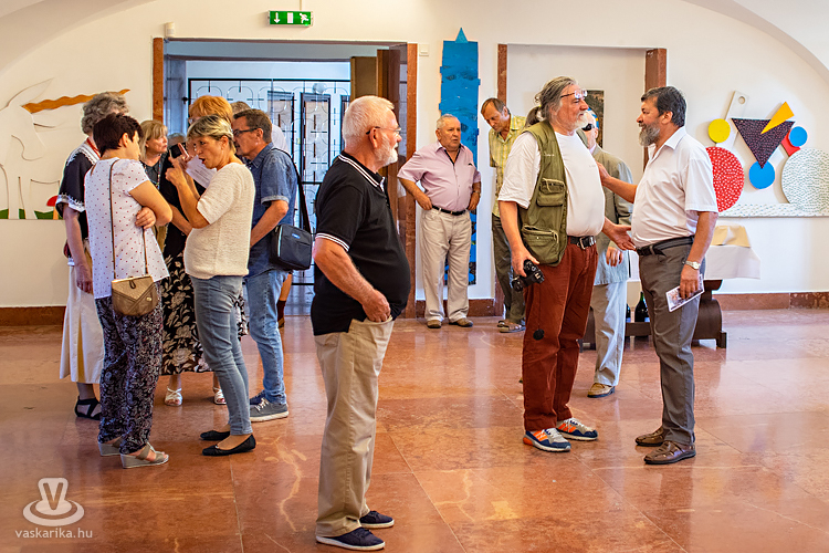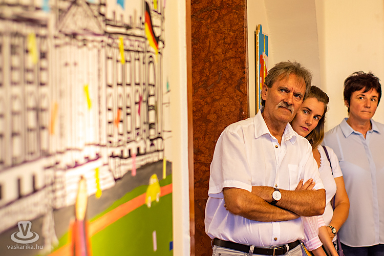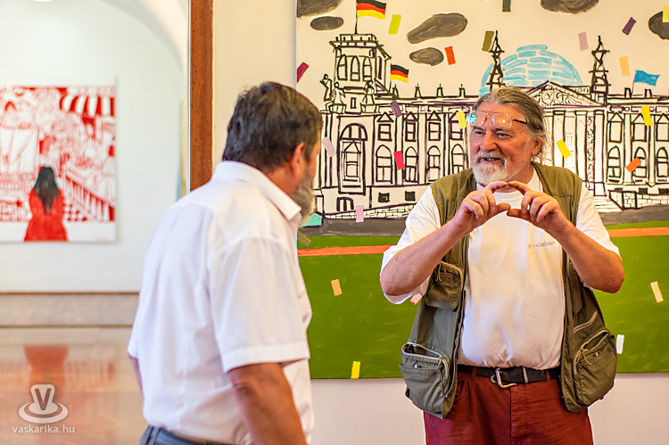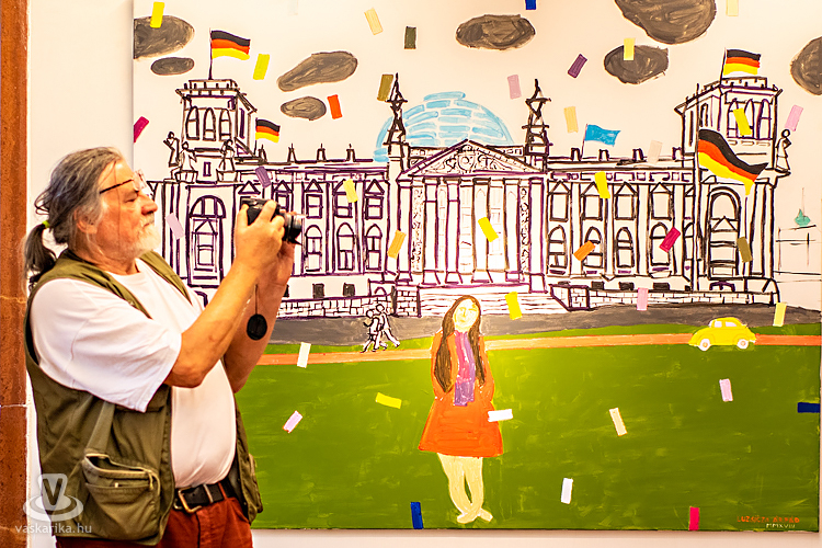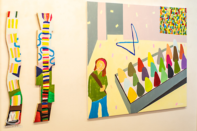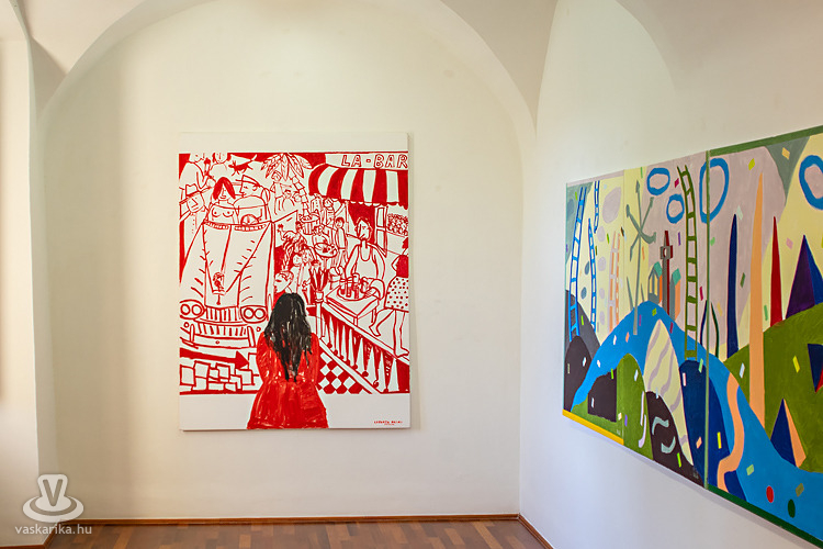 "Egy kiállításban az a legfontosabb szempont, hogy a képek világában otthonosan és jól érezzük magunkat, értelmezzük saját belátásunk, fantáziánk szerint" - ajánlotta a látogatók figyelmébe a "háromtermes" tárlatot az író. Mi pedig belevetettük magunkat ebbe a játékos, szemkerekítő-szájgörbítő (felfele!) színorgiába, és ajánljuk melegen a hűvösebb és szürkébb napokra mindenkinek!