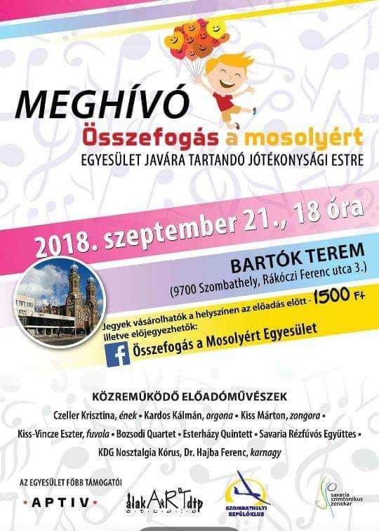 A Savaria Szimfonikus zenekar támogatásával jótékonysági koncertre várják az érdeklődőket szeptember 21-én 18 órakor a Bartók Terembe!