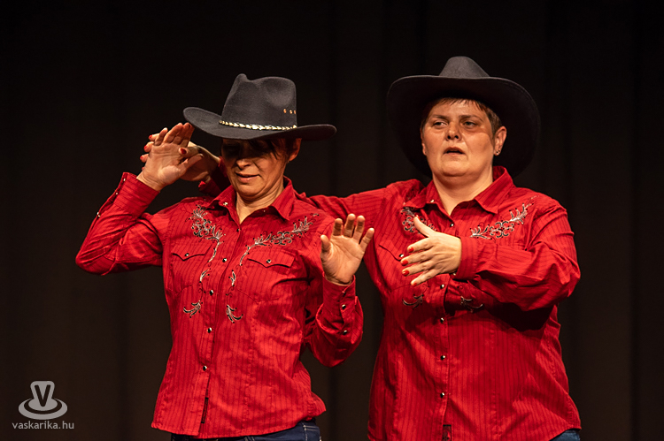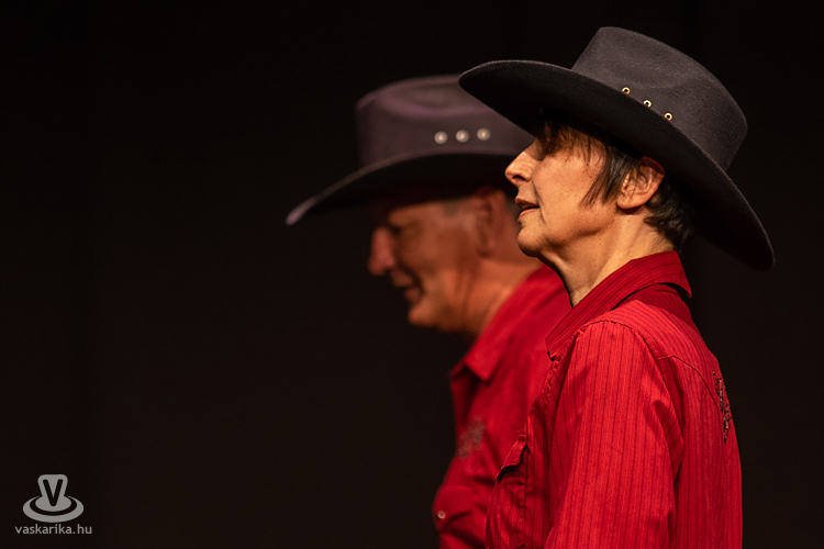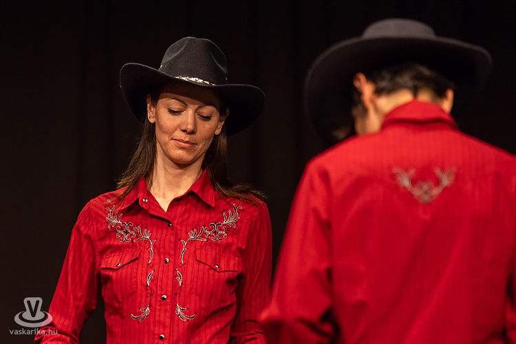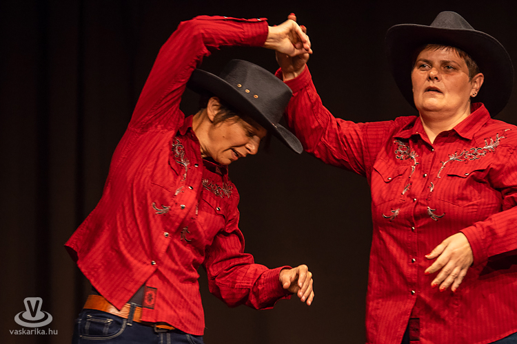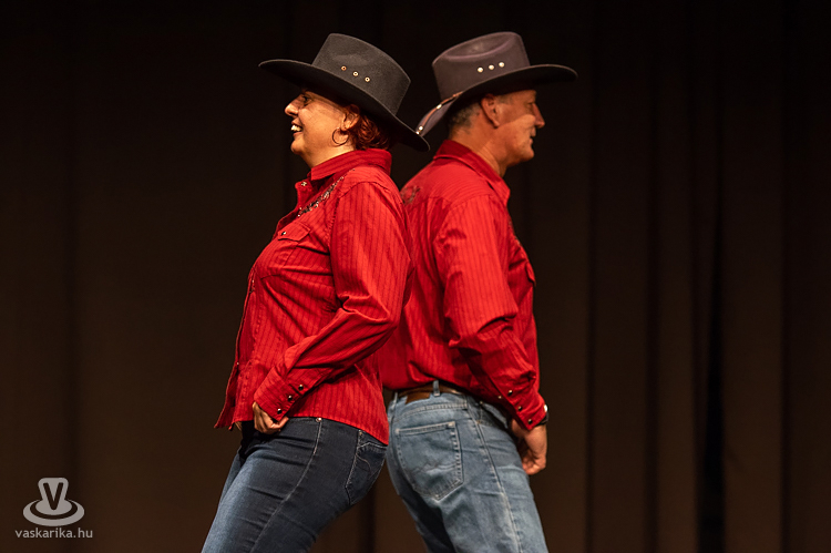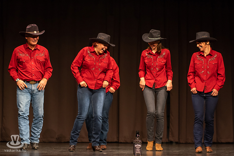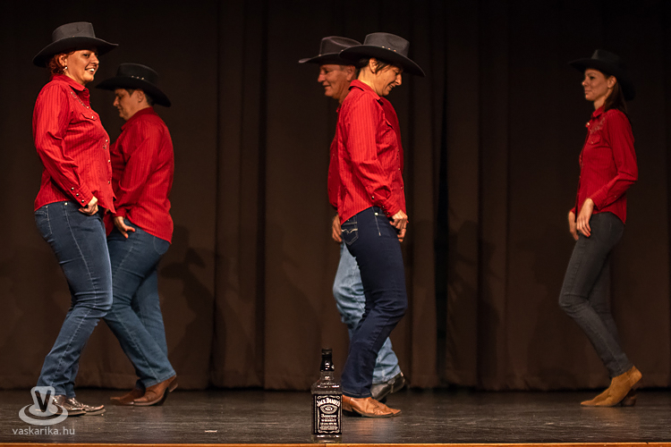 Sok minden belefér egy színházi fesztiválba, többek közt a country is, annak minden hozadékával és "húzadékával". Ezt bizonyította a fesztiválra szintén visszajáró Just for Fun Linedance Club, és a színpad elejére helyezett - sajnos üres ;) - whiskey-s üveg. A táncosok színpadi műsorát követően a nézőtér lett a táncplacc, ahol countrytánc alapokat kapott a humorbombák után is kimondottan aktív közönség - beleértve már a színjátszókat is.