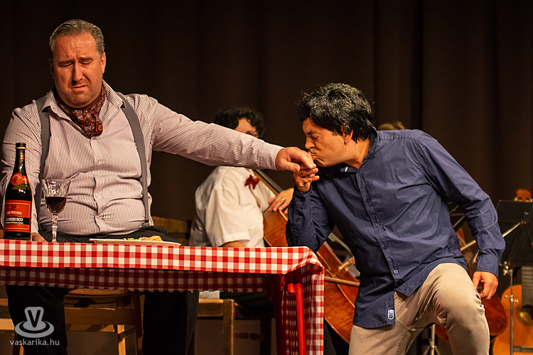 Akkor még nem tudtuk, hogy az utánuk következő pápai Szó és Kép Színpad egyenesen merényletet követ el a nevetőizmaink ellen, nemcsak a poénok harsánysága, de a karakterek zseniális megjelenítésével is. A beszélő nevektől - Don Kujon, Don Cotta - hemzsegő Palermói szerelmesek című zenés vicc-skicc egy keresztapa unalmasnak éppen nem mondható mindennapjait elevenítette meg "déli" és "északi" feleségével, az élet dolgaiban járatlan, épp ezért apja jó tanácsait kérő fogadott fiával, és utóbbival szerelembe, vagy inkább csak kapcsolatba "eső" fogadott lányával (!!). A pikantériát sem nélkülöző darabot Don Papa házi zenekara, a Don Cotta vezényelte Pápai Kella Csellóegyüttes olasz dallamai fűszerezték.
