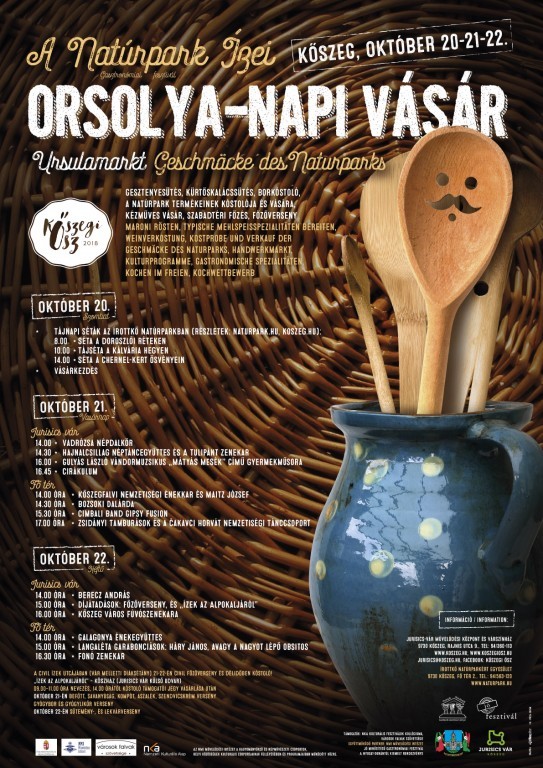 Az idén 17. alkalommal rendezi meg Kőszegen a „Natúrpark ízei"-Gasztronómiai fesztivált és Orsolya napi vásárt a Jurisics-vár Művelődési Központ és Várszínház az Írottkő Natúrparkért Egyesület segítségével. Már a fesztivál előnapján, október 20-án szombaton tájsétákkal, városnézéssel és déltől a vásárosok kiváló portékáival is várják a vendégeket.
