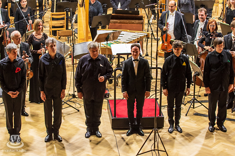 Az egzotikus est nyitásaként egy kortárs zeneszerző, Eötvös Péter művét tolmácsolták, amelyet Mozart frázisokra komponált. Az egyik legnagyobb ma élő kortárs zeneszerzőként számon tartott szerző kicsit görbetükör elé tartotta, kicsit kifigurázta, vagy éppen kiemelte ezeket a fragmenteket - avatta be később a publikumot a műbe Madaras Gergely karmester. A folytatásban is igazi különlegesség szerepelt, mondhatnánk, az „öt szigetecske zenéje", öt Amadinda ütőhangszer-szólistával: Toru Takemitsu From me flows what you call Time darabját halhatta a közönség. A keleti és nyugati filozófiát ötvöző japán komponista művét, amely az első zeneműhöz mérten egészen más „színű", csendes hangvételű, különböző kultúrák ütőhangszereit felvonultató „színmű" volt - vastapssal értékelte a közönség.
