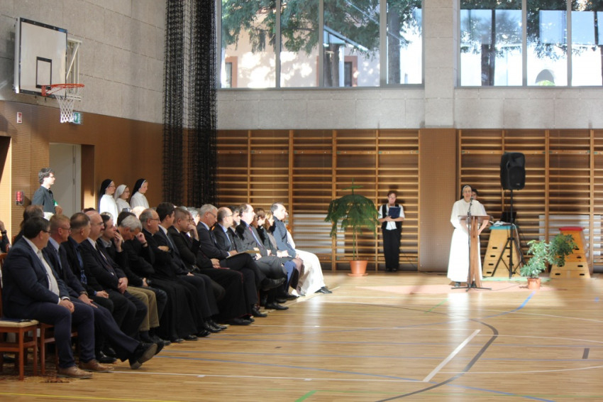 Deák Hedvig, a domonkos rendi nővérek általános főnöknője az ünnepségen elmondta, hogy az új tornacsarnokot Boldog Pier Giorgio Frassati védelmébe ajánlják, aki Szent Domonkos világi rendjének volt a tagja, a 20. század elején Olaszországban élt, rövid élete során pedig úgy vallotta meg katolikus hitét, hogy bizonyítékát adta annak, a hétköznapi életben minden nap gyakorolható a keresztényi szeretet.