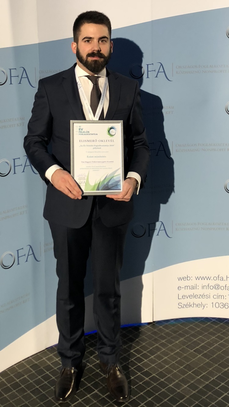 Országosan 73 cégtől és közintézménytől - többek között a Bosch, a BPW-Hungária, az IBM, a MAM Hungária, a Pest Megyei Kormányhivatal és a Zsidai Csoport - összesen 90 pályázatot nyújtottak be az OFA Nonprofit Kft. által meghirdetett Az Év Felelős Foglalkoztatója 2018 felhívására. 2018-ban a Vas Megyei Önkormányzati Hivatal második helyen végzett a közszféra kategóriában.