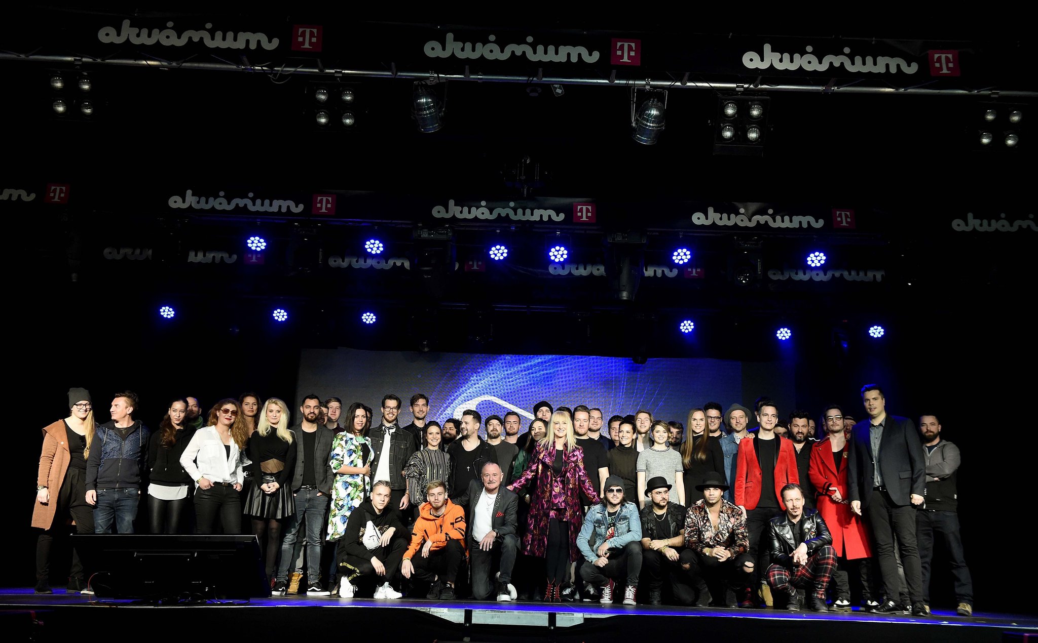 Nagy Feró (elöl, b3), Vincze Lilla (elöl, k) Both Miklós (hátul, j2) és Mező Misi (hátul, j4) A Dal 2019 zsűrijének tagjai, valamint a verseny résztvevői a műsor sajtótájékoztatóján az Akvárium Klubban 2018. december 3-án. A dalválasztó show-t immár nyolcadik alkalommal rendezik meg, a műsort a Duna Televízió sugározza majd január 19-től. MTI/Bruzák Noémi