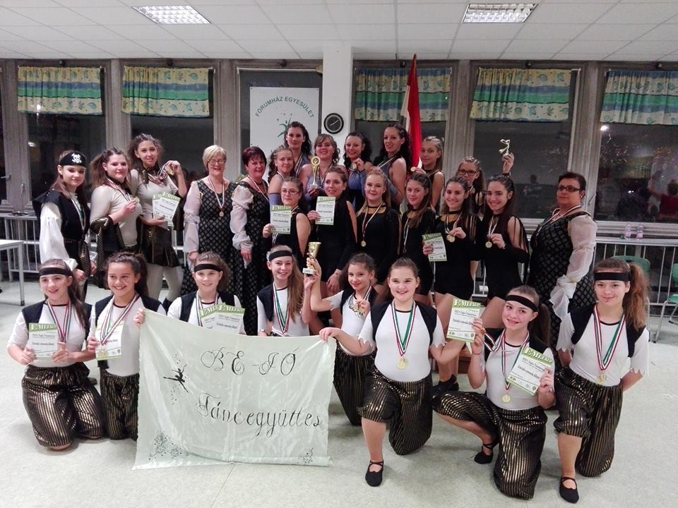 A BE-JÓ Táncegyüttes mindhárom korcsoportja nagy sikert aratott, az arany- és ezüstérmek mellé szépen sorjáztak a különdíjas kupák is a régebbi és az újonnan elkészült koreográfiákra.