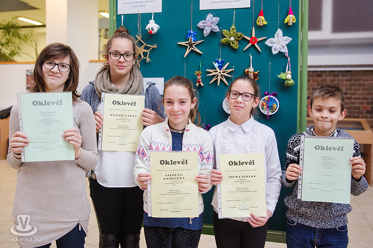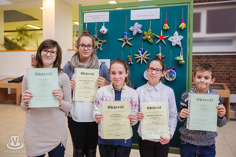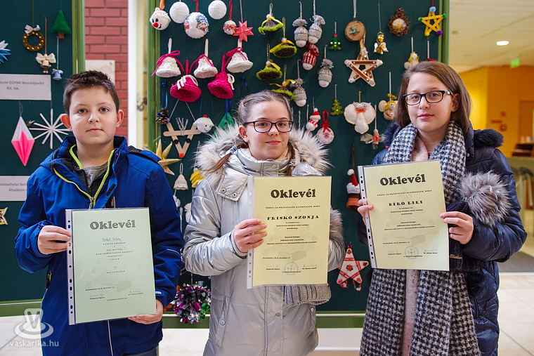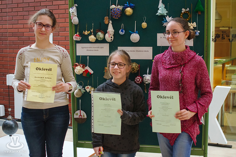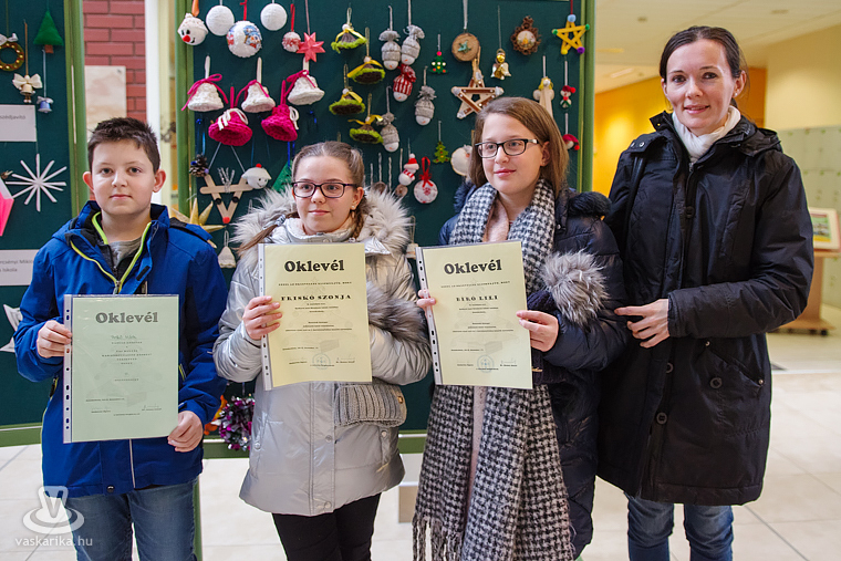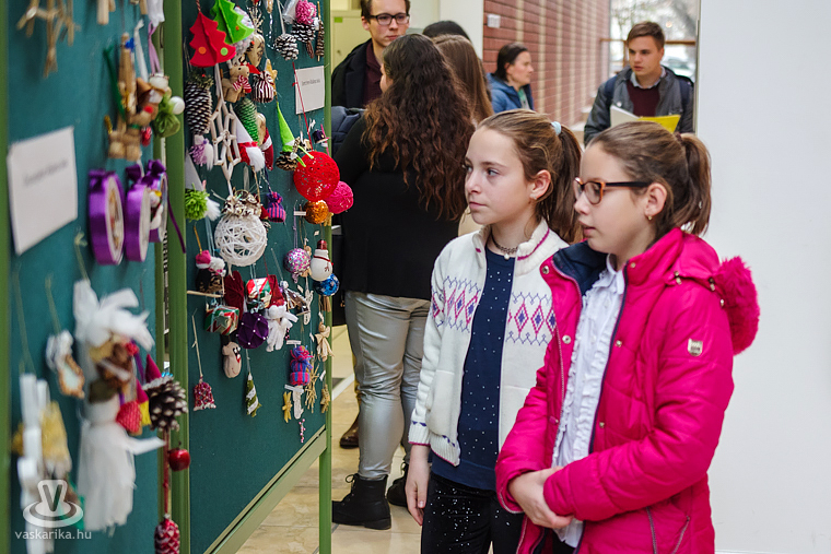 Számos kisdiák és kísérője - szülő, pedagógus - várta izgatottan az első Vas megyei karácsonyfadísz készítő verseny eredményhirdetését az egyetem C épületének aulájában. Az általuk készített díszek négy tárlón vonzották a figyelmet, köztük számos ötletes "homemade" munka, amikhez parafadugótól a csipkén és kávékapszulán át a szalmáig sokféle anyagot felhasználtak a kis "kézművesek" - akár önállóan, akár tanári vagy szülői segítséggel.
