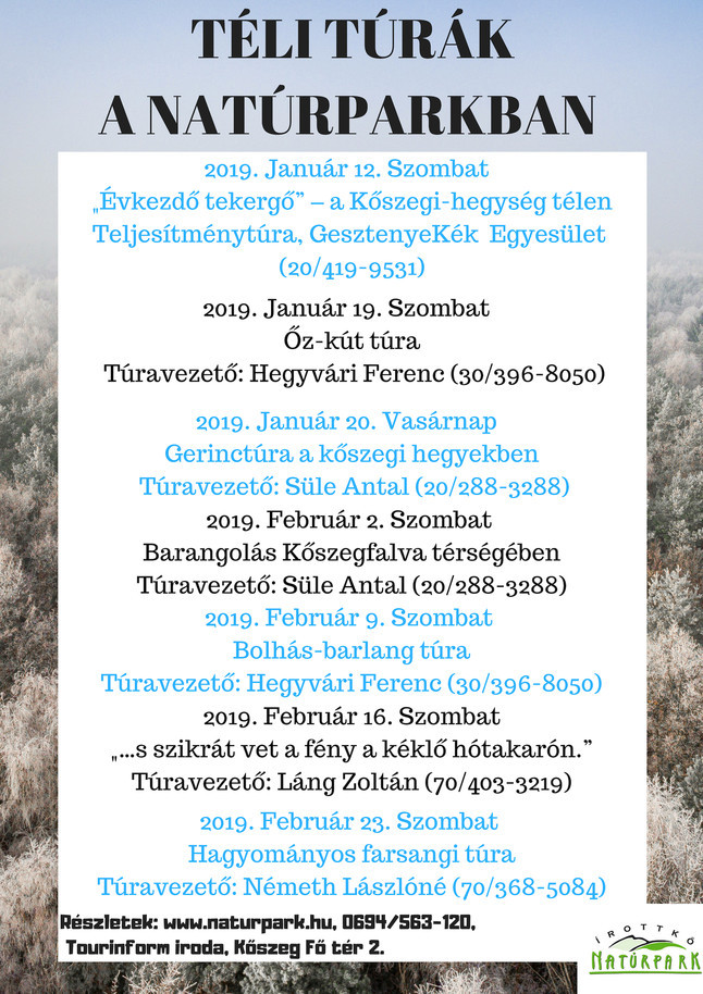 Januárban és februárban is szinte minden hétvégére kiváló téli túrákra hívogat az Írottkő Natúrpark. Teljesítménytúra, jókedvű családi túra, hegyi és mezei barangolás – mind akad a kínálatban.