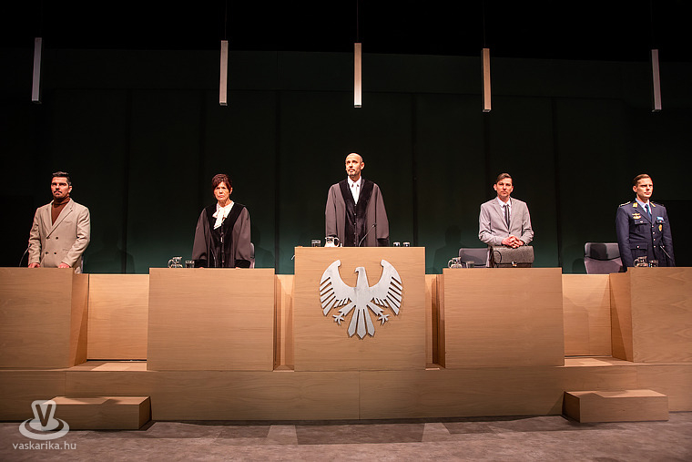 A Lufthansa Berlin és München között közlekedő utasszállítóját eltéríti, és egy teltházas futballstadion felé kormányozza egy terrorista. Lars Koch vadászpilótának döntenie kell: lelője-e a repülőgépet a fedélzetén 164 emberrel, hogy megmentse a stadionbeli hetvenezret. A történteket Ferdinand von Schirach darabja egy bírósági tárgyalás keretei között dolgozza fel. A nézők az esküdtek szerepét kapják: feladatuk, hogy figyeljenek meg mindent, és a végén szavazzanak a látottak-hallottak alapján a vádlott elítéléséről vagy felmentéséről.