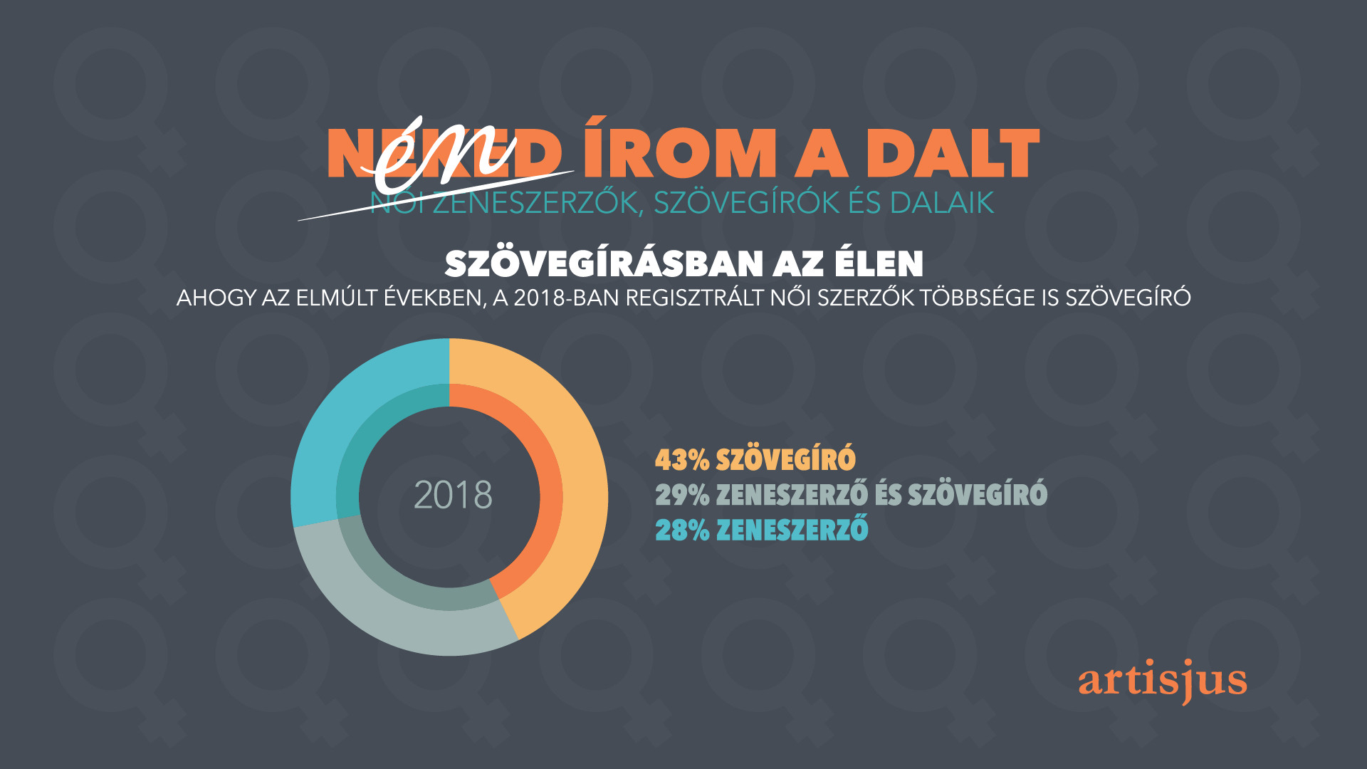 Az elmúlt négy évben mintegy ezer új szövegíró és zeneszerző nő regisztrált az Artisjusnál. A statisztikák szerint ők inkább a szövegírásban aktívak, ugyanis a 2018-ban regisztrált női alkotók 43 százaléka kimondottan dalszövegíró. Közel egyharmaduk zenét is ír a szövegek mellett, míg másik egyharmaduk kizárólag zeneszerző. Ezt támasztja alá a Dal című televízióműsor idei évada is, ahol nyolc olyan szerzemény is bekerült a legjobb 30 közé, amelynek szövegét nő írta.