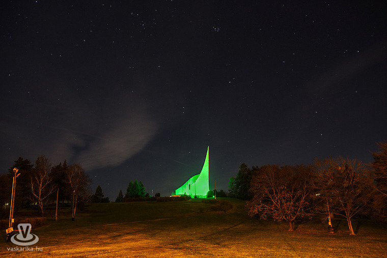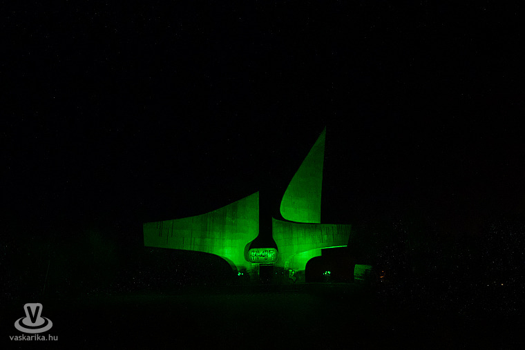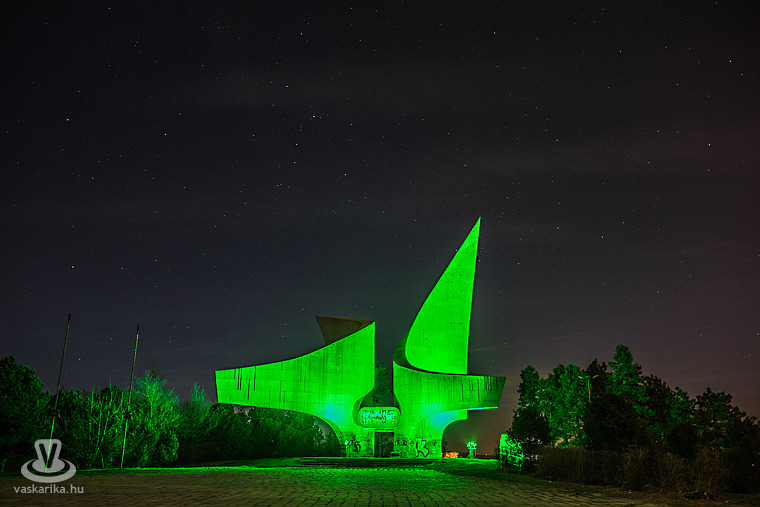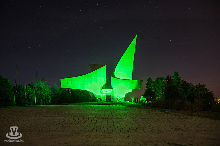 Idén első alkalommal a szombathelyi Emlékmű is felkerült a világ azon nevezetes helyszíneinek sorába, amik március 17-én zöld színben pompáztak Szent Patrik napján. Vasárnap 19 és 22 óra között "zöldült ki" a betonmonstrum a Kopula Kft. jóvoltából.