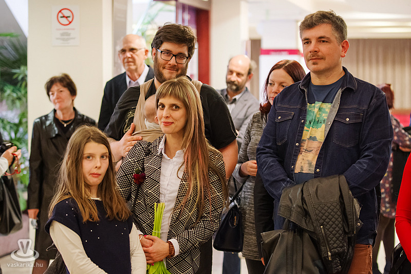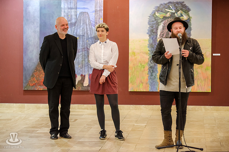 Horváth Márk esztéta, filozófus olykor "zavarbaejtően rendhagyó" gondolataival nyitotta meg Horváth Zsófia festőművész tárlatát a Weöres Sándor Színház aulájában április 4-én.