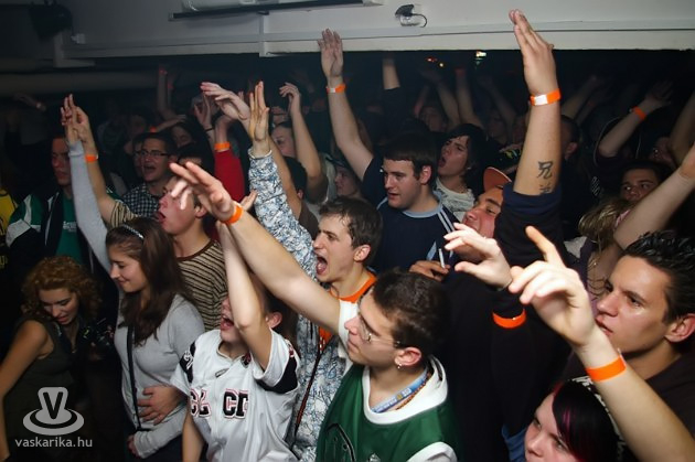 Méltatták viszont a szombathelyi break-csapatokat - harcos üdvözletüket küldve Köciéknek, és felhívták a jelenlévők figyelmét arra, hogy figyeljenek oda jobban a helyi értékeikre, hisz nem sok világbajnok van kishazánkban, Savaria azonban jópárral büszkélkedhet. A távolmaradóknak igazolatlant adtak - pedig többen be sem fértek volna a klubba -, egyedül Kocsis Petike tánczsenink kapott igazolást tőlük távolmaradására. Az egy óra gyorsan eltelt, és az időközben szaunává átlényegült teremben sem a csapat, sem a közönség nem feszegette az újrázást. A műsor így volt kerek, pár várt szám kimaradt, helyettük nemvártak jöttek, a fiúknak van miből válogatni szerencsére. A fellépés után közös fotózás következett, miközben a hangfalakból továbbra is sorjáztak a jobbnál jobb muzsikák. A levezetés az éjszakába nyúlt, és a szép számban kitartók továbbra is bőszen bólogattak a súlyos ütemekre.