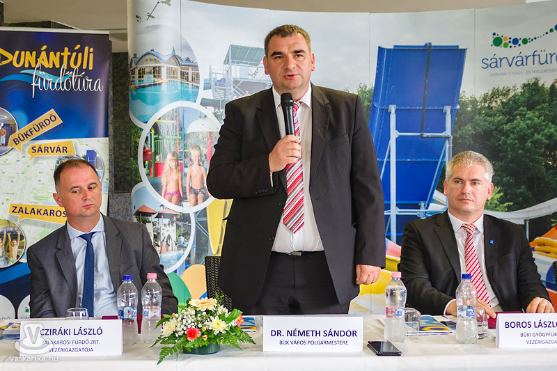 A Bükfürdő Thermal & Spa pihenőterében tartotta közös sajtótájékoztatóját május 29-én a Büki Gyógyfürdő Zrt., a Sárvári Gyógyfürdő Kft. és a Zalakarosi Fürdő Zrt. A sajtóeseményen jelentette be Boros László Attila, a Bükfürdő Thermal & Spa vezérigazgatója, Vojtkó Tibor, a Sárvári Gyógy- és Wellnessfürdő ügyvezetője, valamint Cziráki László, a Zalakarosi Fürdő vezérigazgatója a három fürdő közti együttműködést.