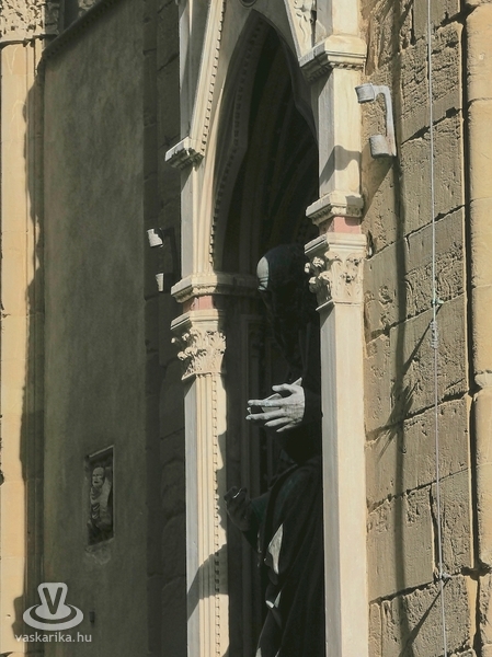 Szobrozzunk! A jó öreg Dávid és másolatai emblematikusan viszik a témát. Az eredeti az Akadémián látható. Nyilván a Palazzo Vecchio környéke, így a Piazza della Signoria gazdagon kínált képanyagot. De jártunk a Ponte Vecchión és a Piazza della Santissima Annunciátán is. Felmentünk Fiesolébe is: sokan tudják tán, itt íródott a Dekameron. Nem ezért mentünk: a ferences kolostor Mária szobra, vagy lent a nagytemplom Máriája is belefér a sétába.