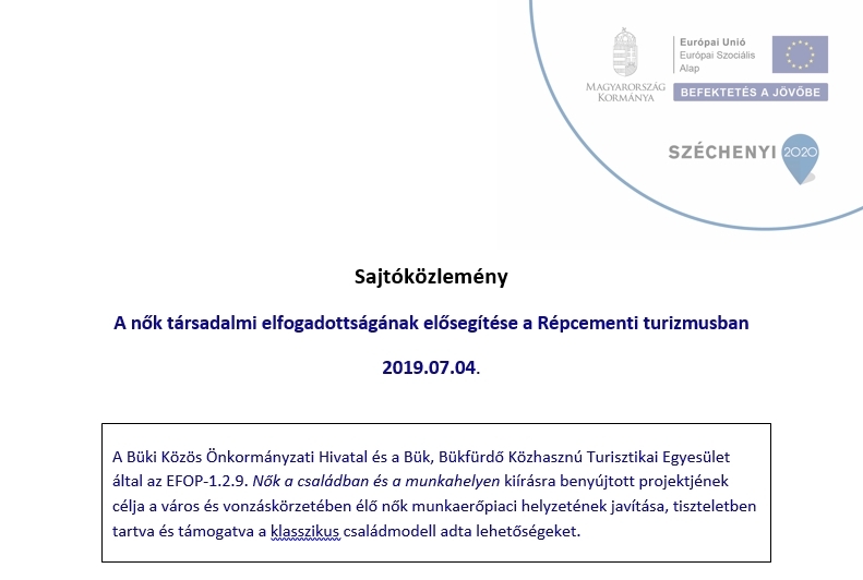 A nők társadalmi elfogadottságának elősegítése a Répcementi turizmusban (sajtóközlemény)