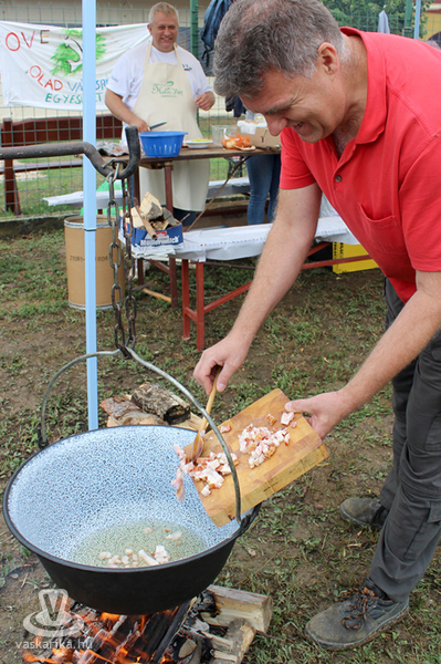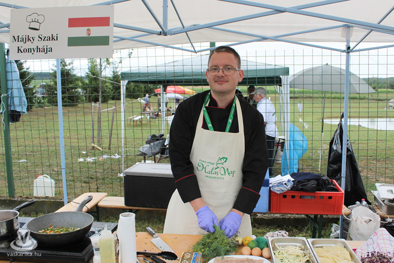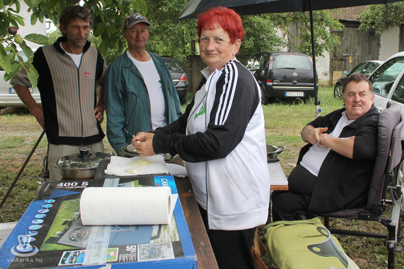 A horgásztó körül ekkor már álltak a bográcsok, folytak az előkészületek, hiszen kezdetét vette a főzőverseny. Idén halászlé, illetve egyéb halétel kategóriában lehetett nevezni. Ahogy jártunk a csapatok közt, és kérdezgettük, ki mit készít, megállapítottuk: mindenki egyedit fog alkotni. Sokan főztek ugyan halászlevet, de mindenkié egy kicsit más volt, mindenki próbálta különlegessé, még finomabbá tenni a saját ételét. A halászlé, és a sült hal mellett olyan érdekességek is készültek, mint az orosz halleves, vagy a halból készült fasírt, kolbász, illetve tepertő. Az egyik csapat frissen kicsomagolt, előző nap vásárolt halfüstölőben készítette a finomságot, ami mindenkinek, még nekik is meglepetés lett, hiszen aznap próbálták ki először.