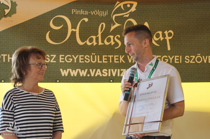 A színpadon elkezdődtek a különböző produkciók, a Vaskeresztesi Hagyományőrzők csodás táncait, és a Nardai Énekkar által előadott énekeket láthatta, hallhatta a közönség. A két csoport Puskás Norberttől, a Sporthorgász Egyesületek Vas Megyei Szövetségének ügyvezető elnökétől elismerő oklevelet vehetett át, hiszen évek óta emelik a rendezvény színvonalát előadásukkal.