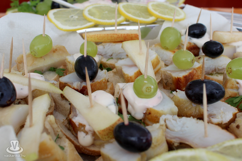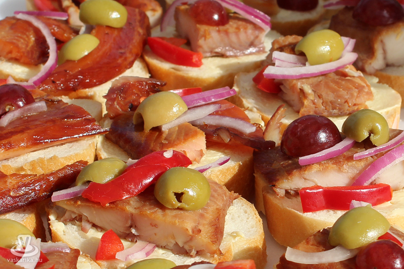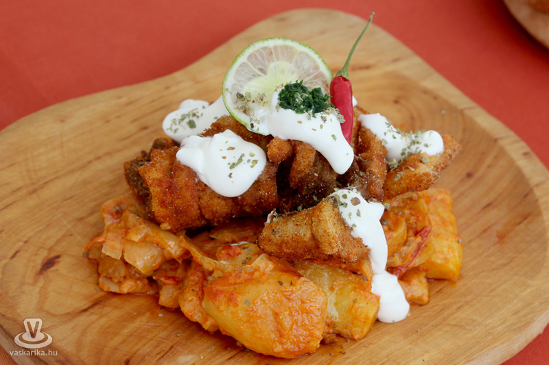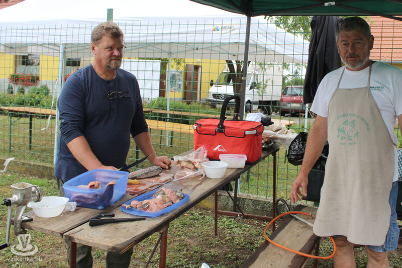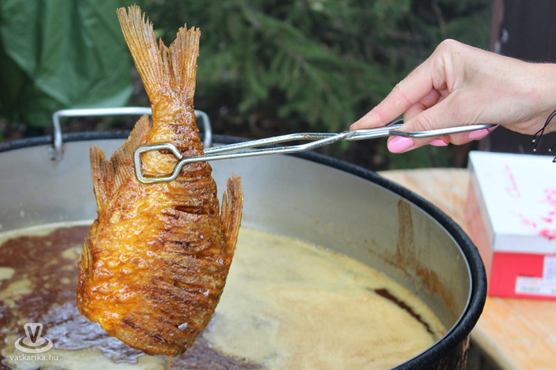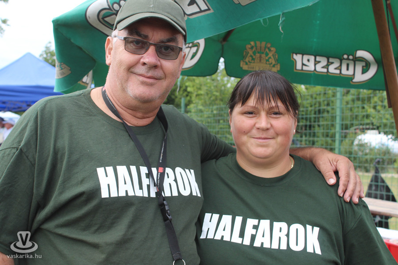 A látogatóknak készített ízletes sült halat Konyher Tivadar és csapata. Ők saját készítésű fűszerkeveréket használtak, amiben 3-4 órát hagyták pihenni a halat, majd magos morzsába forgatás után forró olajban sütötték ki. Az idei évben különleges volt, hogy harcsaburger is készült, amit Májky Szaki Konyhája készített. Amikor a halpogácsa receptjéről érdeklődtünk, akkor Bősz Miklós elmondta: ledarálják a harcsát, abból pogácsákat formálnak. Pankó morzsába, lisztbe, tojásba forgatják, sózzák, borsozzák, lime levével és héjával ízesítik. A kitűnő fogásból százötven készült.