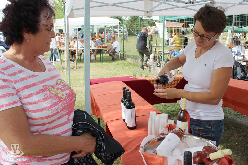 Az Alpesi Fogadó bejáratával szemben Mittlné Ódor Anita borász várta az érdeklődőket borkóstolásra. Kérdésünkre elmondta: kedvence a kékfrankos, amit itt a rendezvényen a halászléhez ajánlana. Ez a fajta adja a borainak nyolcvan százalékát, és azért is szereti, mert a tájegységnek ez felel meg a legjobban. A rendezvényre merlot és rozé bort is hozott, amikor ott jártunk, a rozé nagyon népszerű volt a hölgyek, a merlot pedig a férfiak körében. Monos Tibor a bejárattól balra fogadta a látogatókat, és egy rövid előadást tartott a sebes pisztrángokról, amikből készült falatkákat aztán az érdeklődők meg is kóstolhattak.