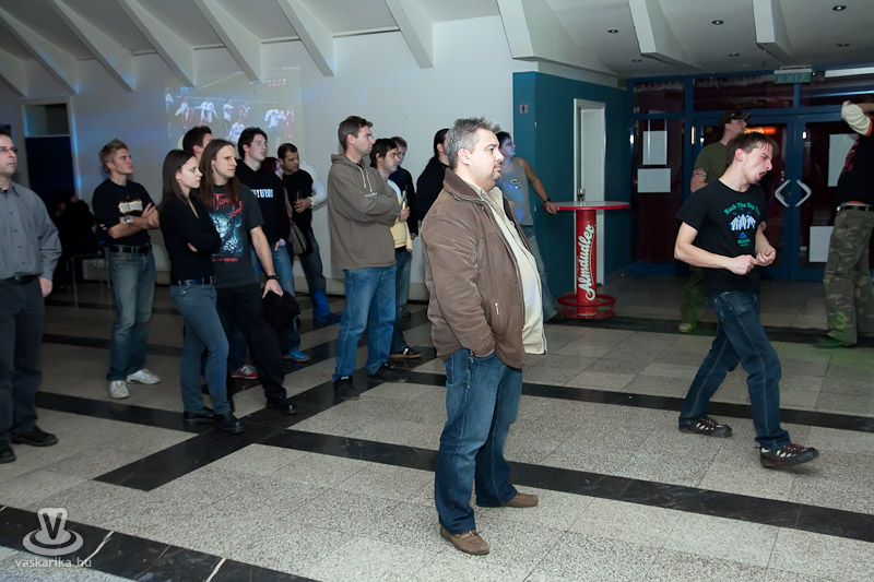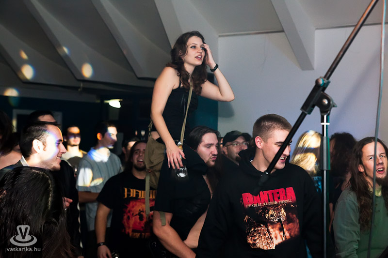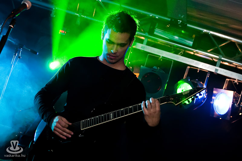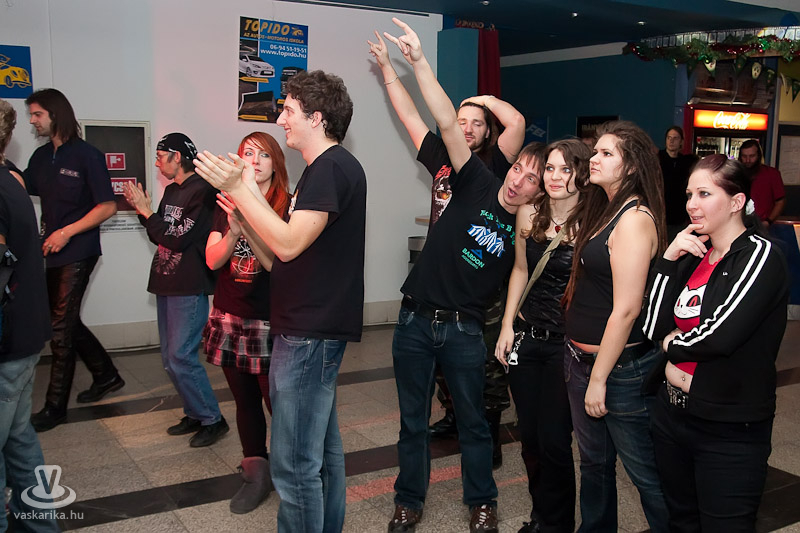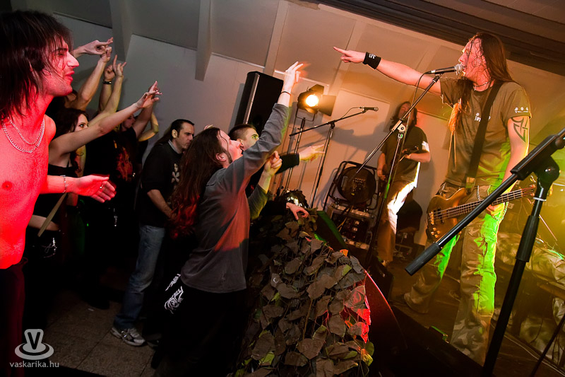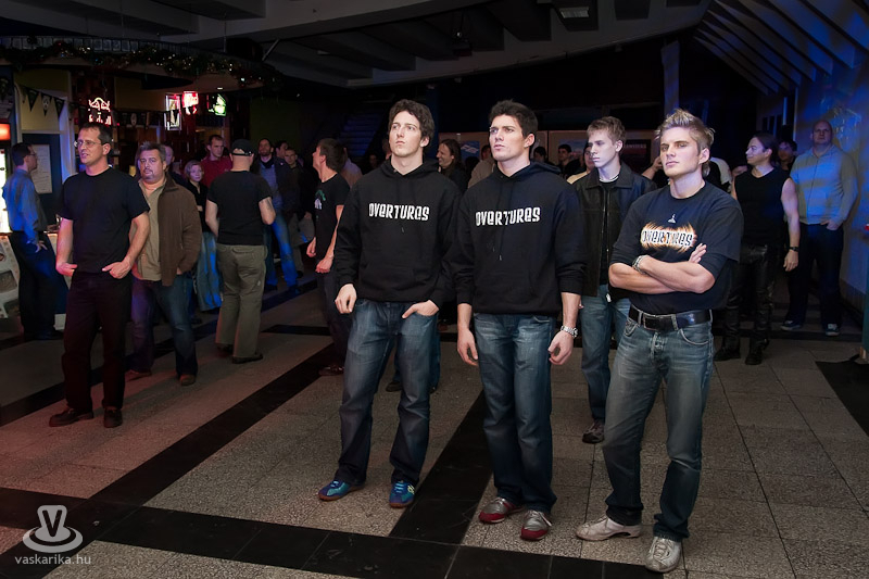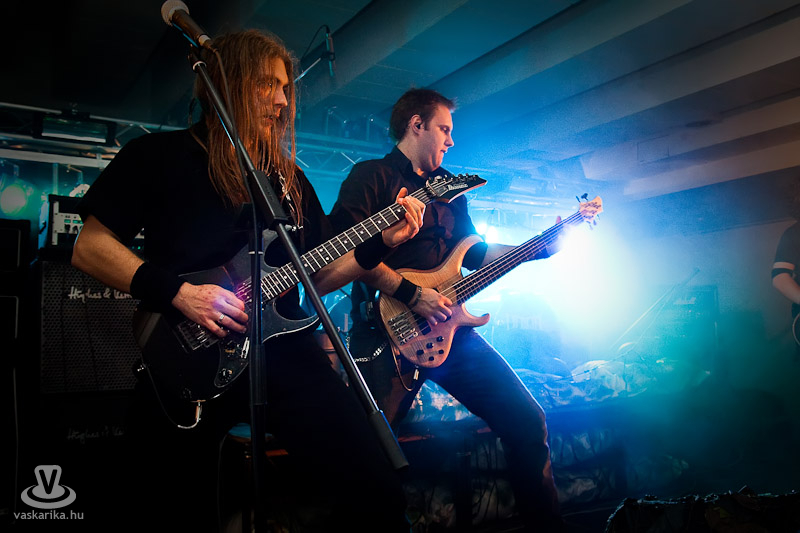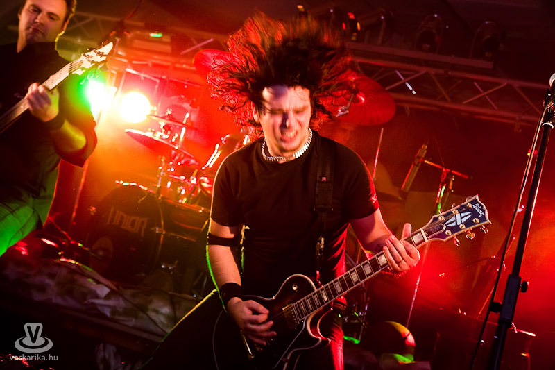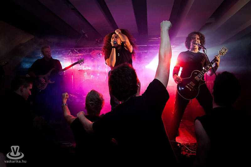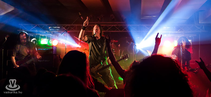 Ami viszont eztán következett, arra tényleg nehéz szavakat találni. Az előzetes beszélgetések alapján már derengett, hogy külhoni metal zenekarral is lesz dolgunk, mi mégis egy kicsit fáztunk a gondolattól, hogy bizony a Komondi fivérek öv alatt lepaktáltak a gyógyszeriparral, és éppen ezért képesek lesznek idehozni egy olyan cicomás olasz bandát, akik folytán az egy főre jutó nyugtatófogyasztás jelentősen megemelkedik a koncertlátogatók körében. Ehhez képest tátva maradt a szánk a talján Overtures produkciója láttán, hiszen az ikergitáros power metalban utazó négyes lerakta a bulit, ahogy kell. Hanggal, szerkóval, mindennel. Per Favore, megkockáztatjuk ezen a környéken az elmúlt két évben nem láttunk ilyen érett fellépést, túl azon, hogy egyénileg valamennyien uralták a hangszerüket, meg remek nótákat is hoztak, a színpadon pedig nem eresztettek betyárgittet a nacijukba. A maga nemében hibátlan prezentáció volt, még akkor is, ha ez a fajta sárkányölő-szegecspukizó metal tucatszámra árasztja el a piacot. Igaz ugyan, hogy sok minden szólt hátulról is, na de egy ilyen szintszőnyeges, instrumentális intermezzokkal nyakonöntött zenét nehéz is billentyűs nélkül hitelesen előadni. Michele Guaitoli pedig még fazonilag is kiköpött Fabio Lione (a Rhapsody énekese- a szerk.), de a hangja sem volt akármi. Idestova több száz ilyen zenekart láttunk már életünk során, de itt ezen a vidéken ilyesmit még nem igazán, kis túlzással felért egy UFO észleléssel. Mindazonáltal nagy kalapemelés előttük, merjük remélni, hogy még viszontláthatjuk őket a közeljövőben. Grazie mille!